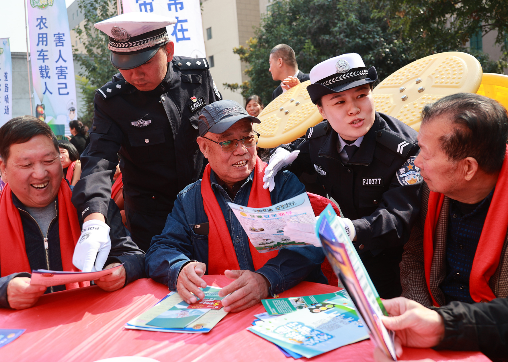 10月23日,陜西省大荔縣公安局交警大隊(duì)民警輔警走進(jìn)社區(qū)向老年人宣傳“一盔一帶”“一老一小”交通安全和防詐騙宣傳活動(dòng)。