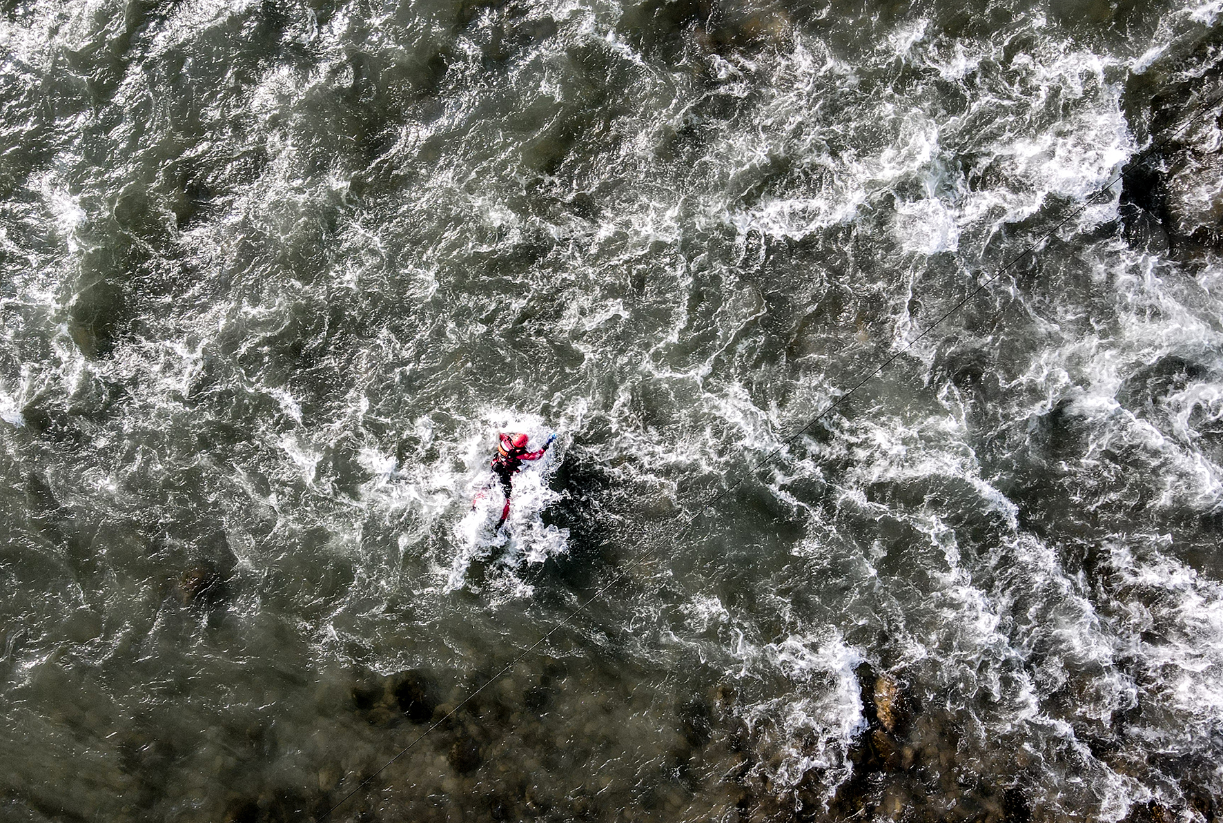 圖為一名消防員在岷江都江堰段進(jìn)行“涉水橫渡”訓(xùn)練。
