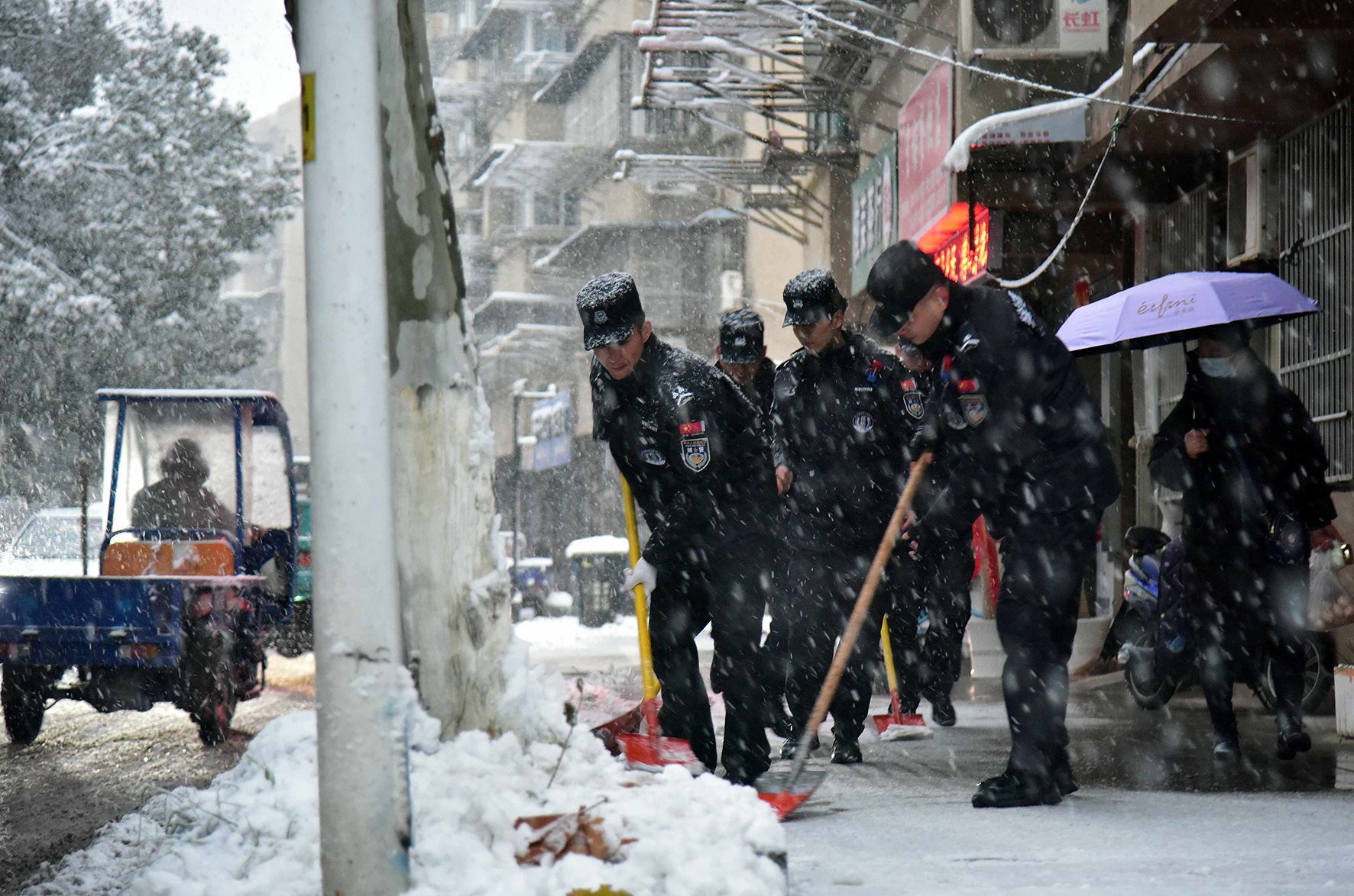 12月18日,安徽省馬鞍山市和縣公安局西埠派出所民警正在轄區(qū)小潘村給孤寡老人鏟雪。