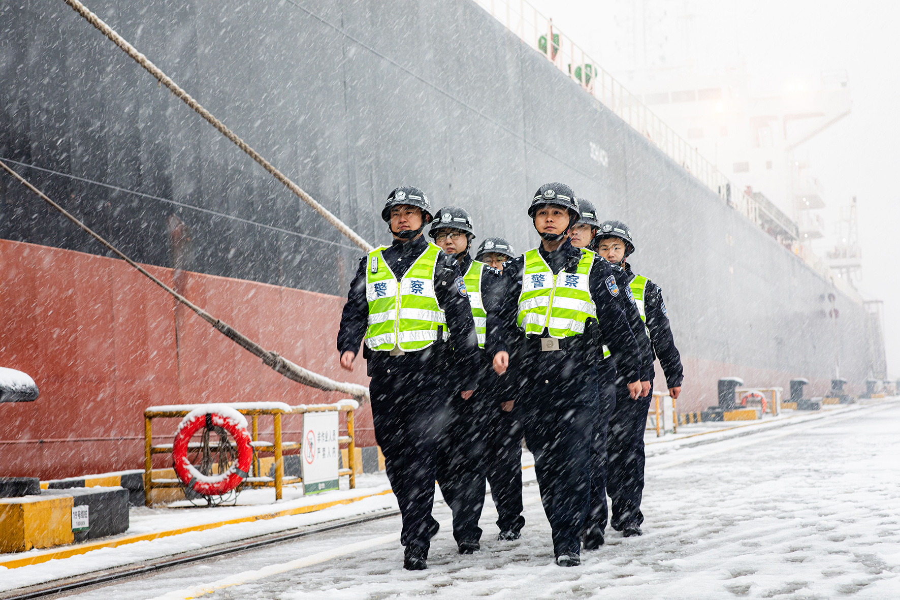 12月18日,南京港出入境邊防檢查站執(zhí)勤一隊(duì)民警聞“雪”而動(dòng),迅速啟動(dòng)惡劣天氣應(yīng)急預(yù)案,24小時(shí)不間斷加強(qiáng)對(duì)港口執(zhí)勤區(qū)域、錨地等重點(diǎn)部位和場(chǎng)所的巡查力度,全力保障口岸通關(guān)順暢。