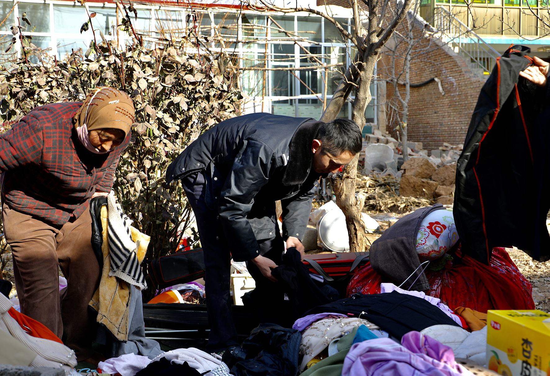 圖五:12月21日,民輔警幫助受災(zāi)群眾收集整理物品。