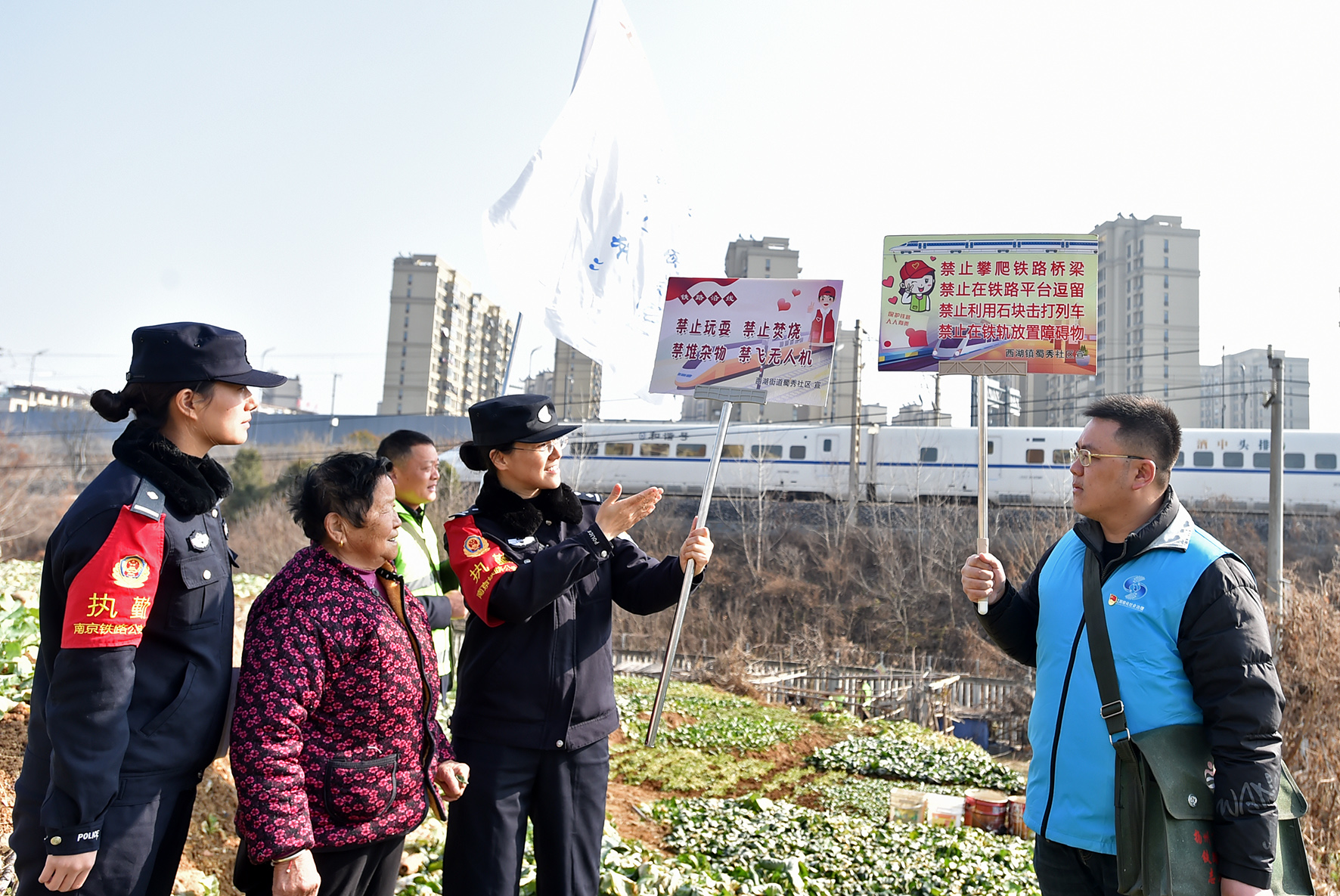 1月1日,一支由南京鐵路公安處揚(yáng)州站派出所民警和揚(yáng)州市邗江區(qū)西湖街道蜀秀社區(qū)網(wǎng)格員、退伍軍人、志愿者等組成的“蜀秀平安”鐵路護(hù)路聯(lián)防志愿巡防隊(duì)在鐵路沿線開展巡防宣教活動。