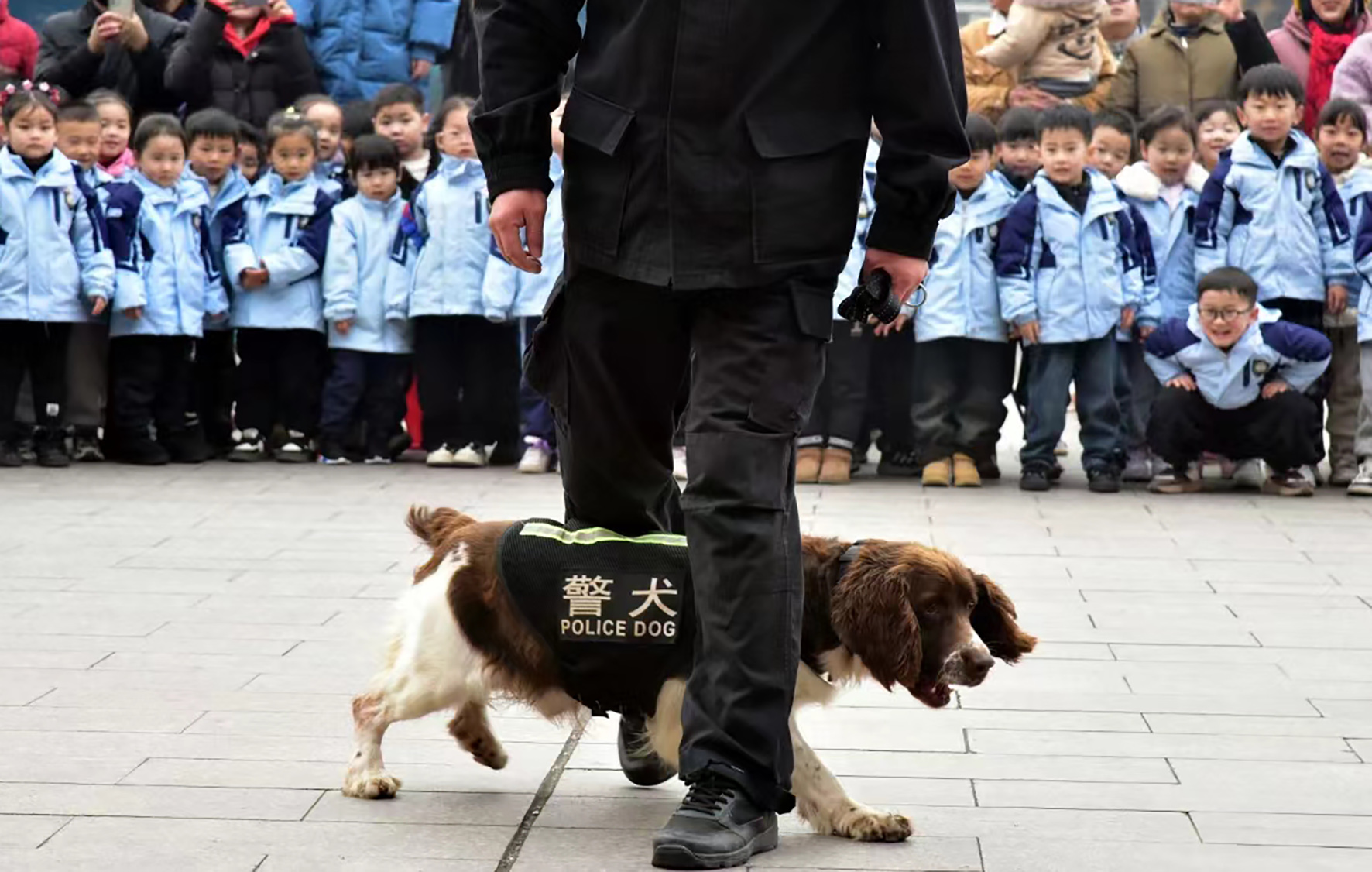 1月10日上午,在甘肅省積石山縣大河家鎮(zhèn)大河村“抗震前線110”警務(wù)室,永靖縣公安局支援民警給小學(xué)生們上一堂警察節(jié)知識課。