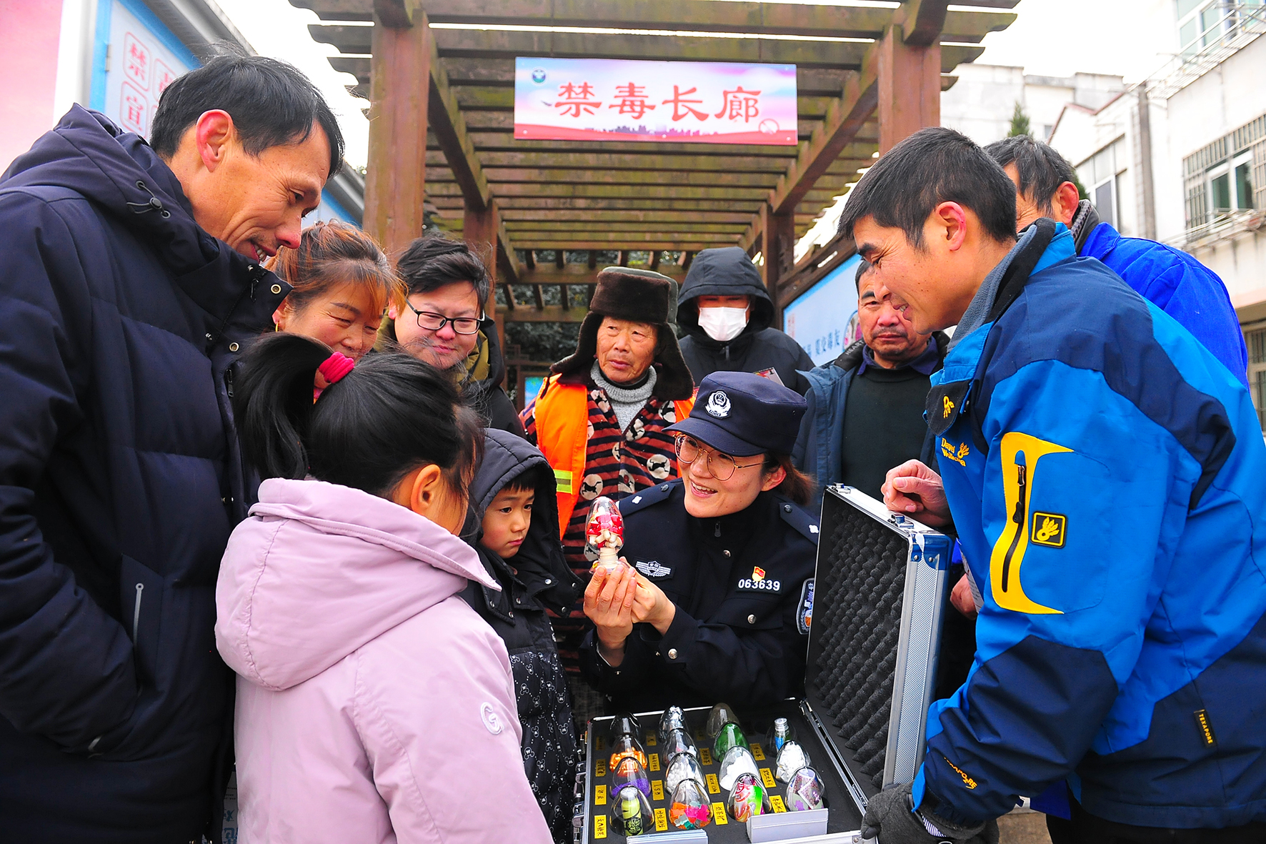 為做好鄉(xiāng)村禁毒知識宣傳普及工作,安徽省巢湖市禁毒委在黃麓鎮(zhèn)法治文化廣場建設(shè)了一個長約15米的禁毒知識宣傳長廊,禁毒大隊和轄區(qū)黃麓派出所民警定期、不定期來到長廊,向群眾宣講禁毒知識。