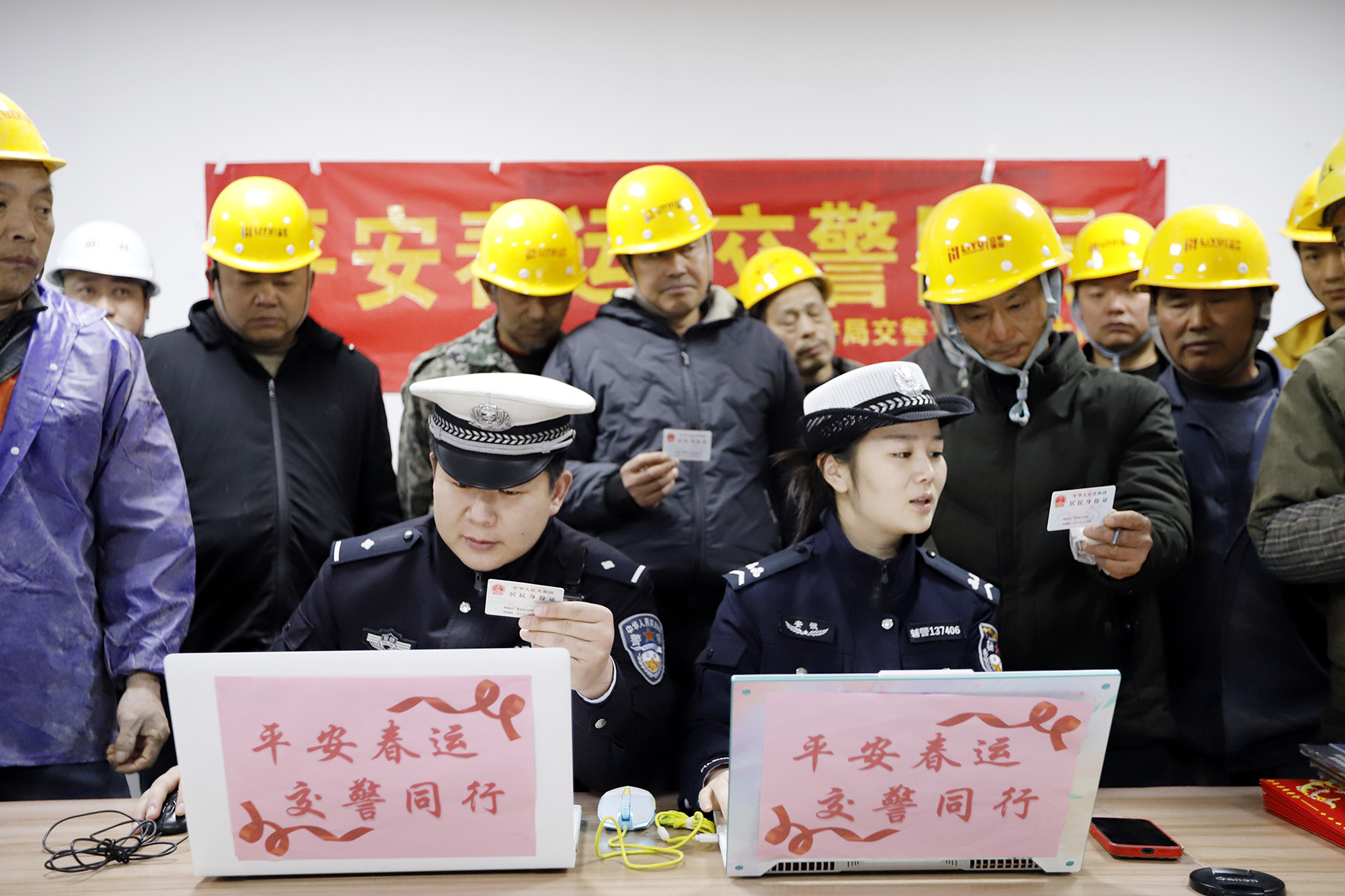 2月2日,安徽省蕪湖市公安局交警支隊鳩江大隊民警來到鳩江區(qū)中江小學濱河分校建設(shè)工地,向外來務(wù)工人員傳授互聯(lián)網(wǎng)訂購春運車票的方法和操作技能,提供網(wǎng)上購票服務(wù)。同時,宣傳交通安全,溫暖務(wù)工人員回家路。