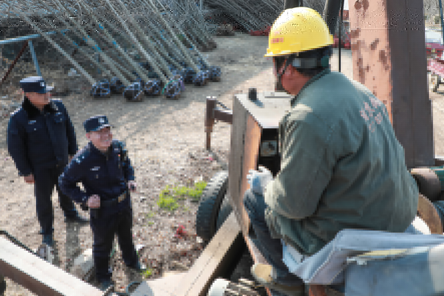 圖為民警向村民宣講安全生產(chǎn)知識。