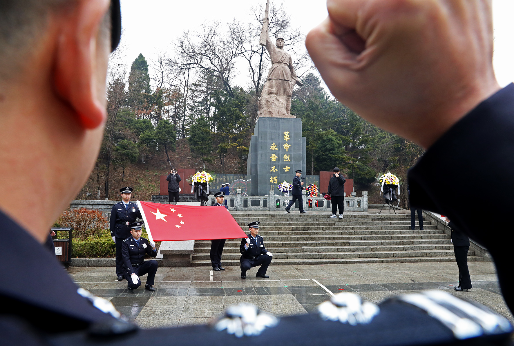 4月3日,遼寧丹東港出入境邊防檢查站民警在東港市革命先烈紀(jì)念碑前開展“傳承英烈志,奮進(jìn)新征程”清明公祭活動(dòng),深切緬懷英烈功績,弘揚(yáng)革命先烈的崇高精神。