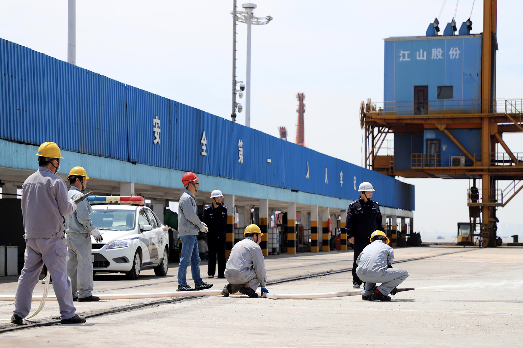 5月9日,長江航運公安局南通分局民警到散貨碼頭開展消防演練培訓活動,進一步提高員工防災減災意識和救災能力。