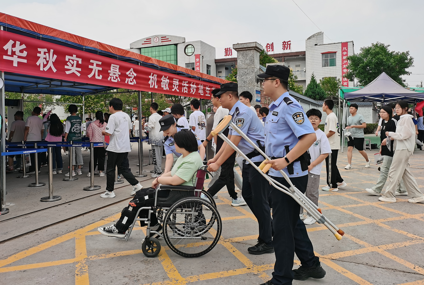 6月7日,甘肅省禮縣公安局特巡警在實驗中學(xué)考點護送一位行走不便的考生走出考場。