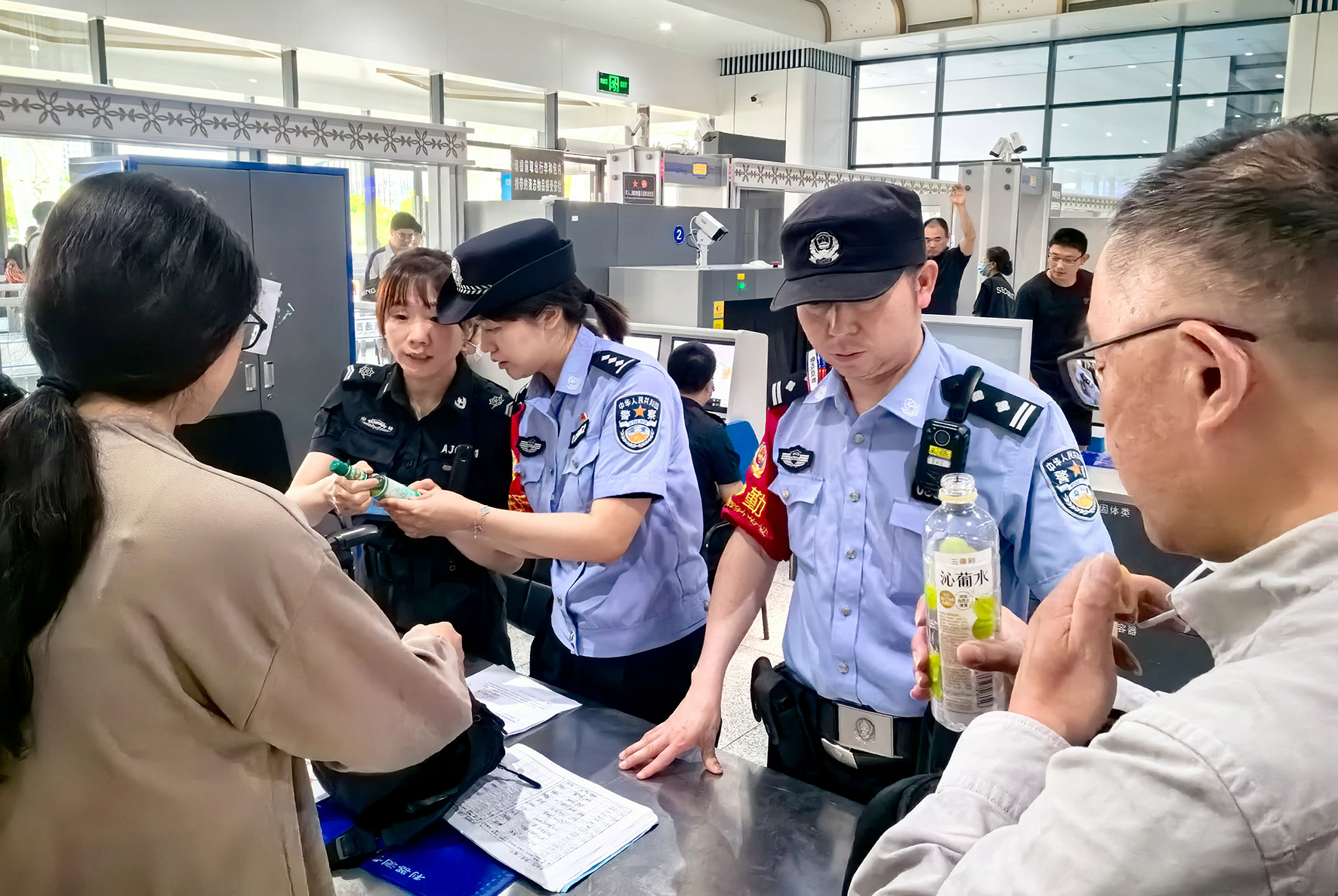 6月10日,南京鐵路公安處南通站派出所民警在檢查旅客行李。為保障端午假期旅客安全出行,南通站派出所著力加強安檢督導(dǎo),統(tǒng)籌抓好假期大客流安檢工作。
