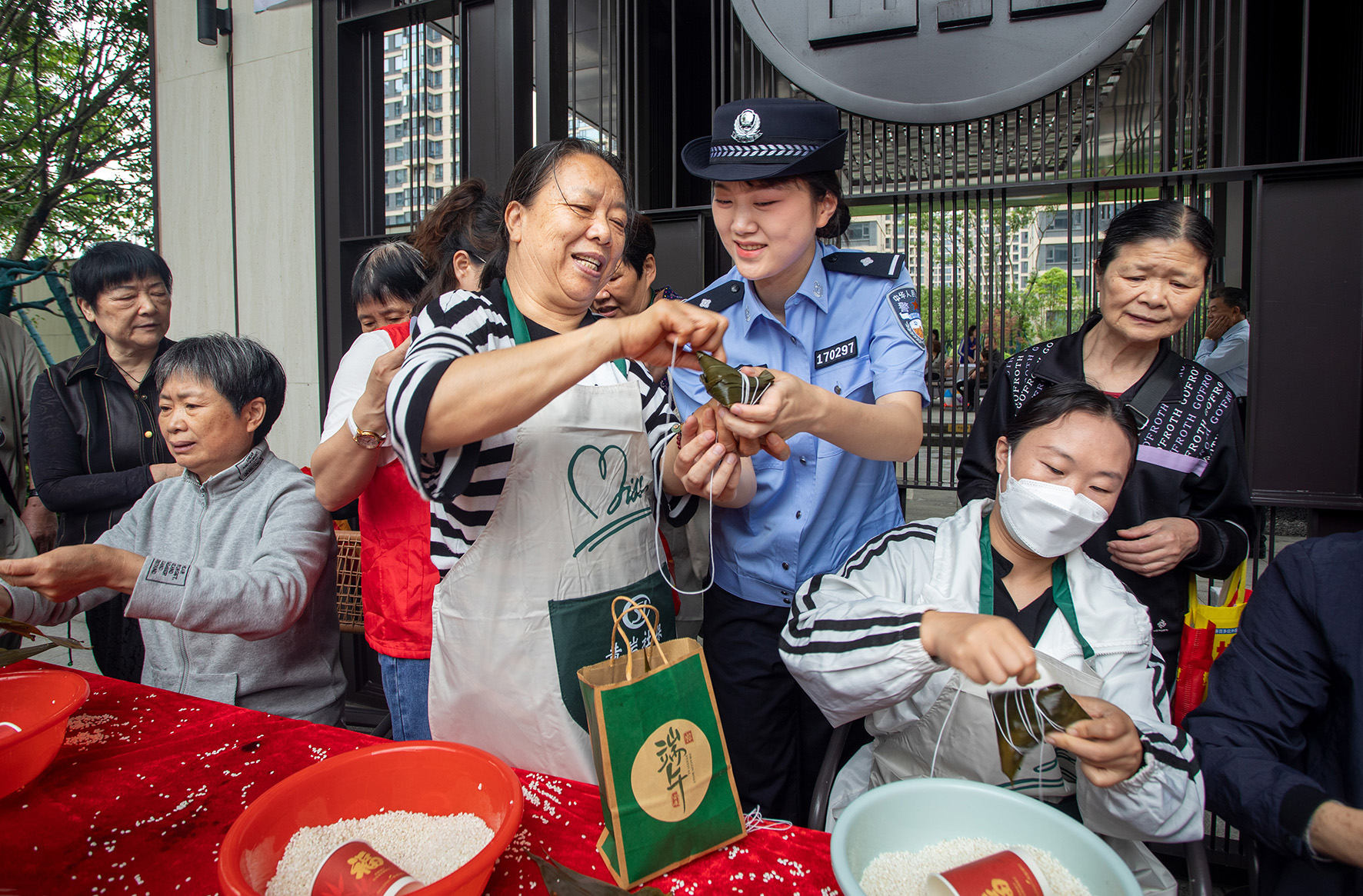 6月7日,浙江省臺州市公安局黃巖分局民警走進西江社區(qū)與群眾一起包粽子、拉家常,同時開展反詐防范宣傳。
