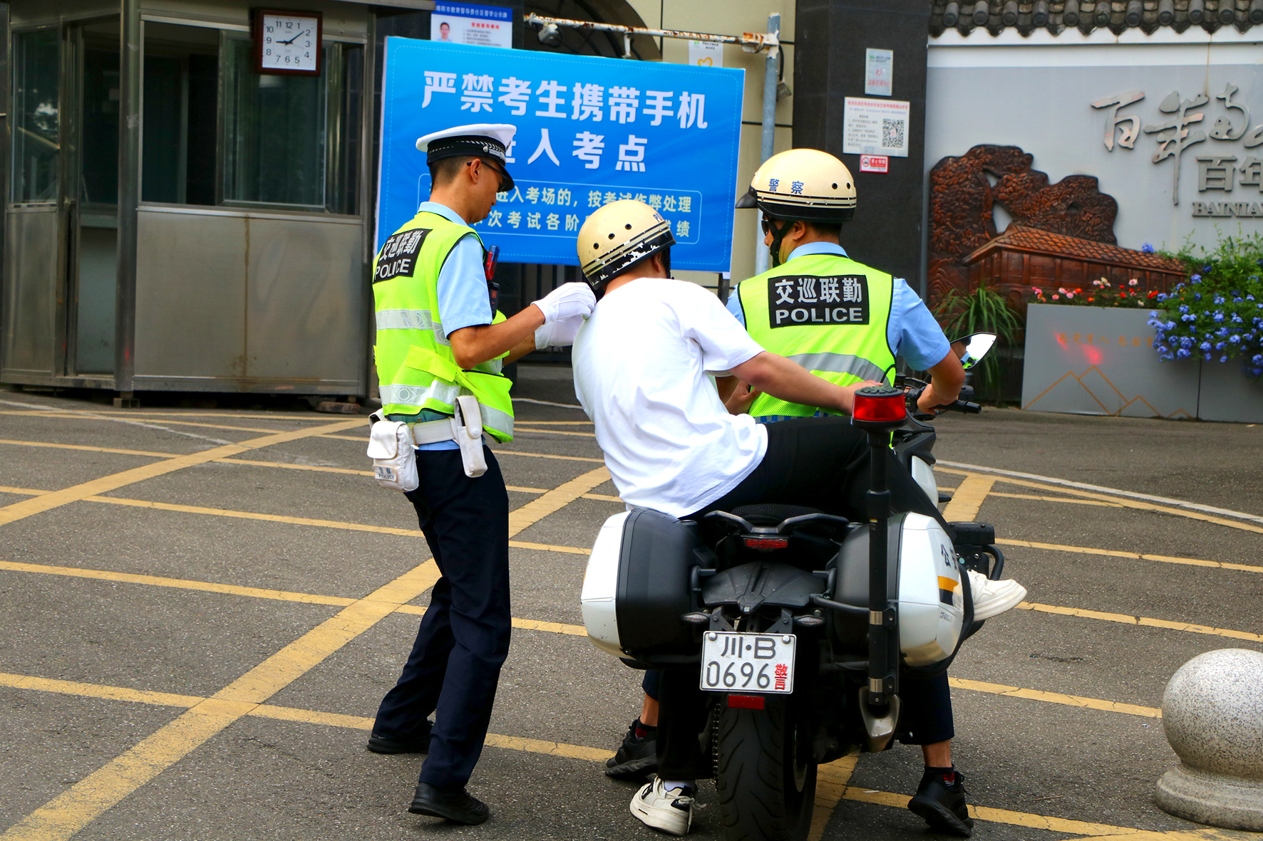 6月12日,四川省綿陽市中考南山中學考點,執(zhí)勤的綿陽市公安局交警支隊直屬一大隊民警接到帶隊老師求助,一位考生不慎將準考證遺落在學校。民警立即騎上警摩帶考生往返二十多公里,順利取回準考證。