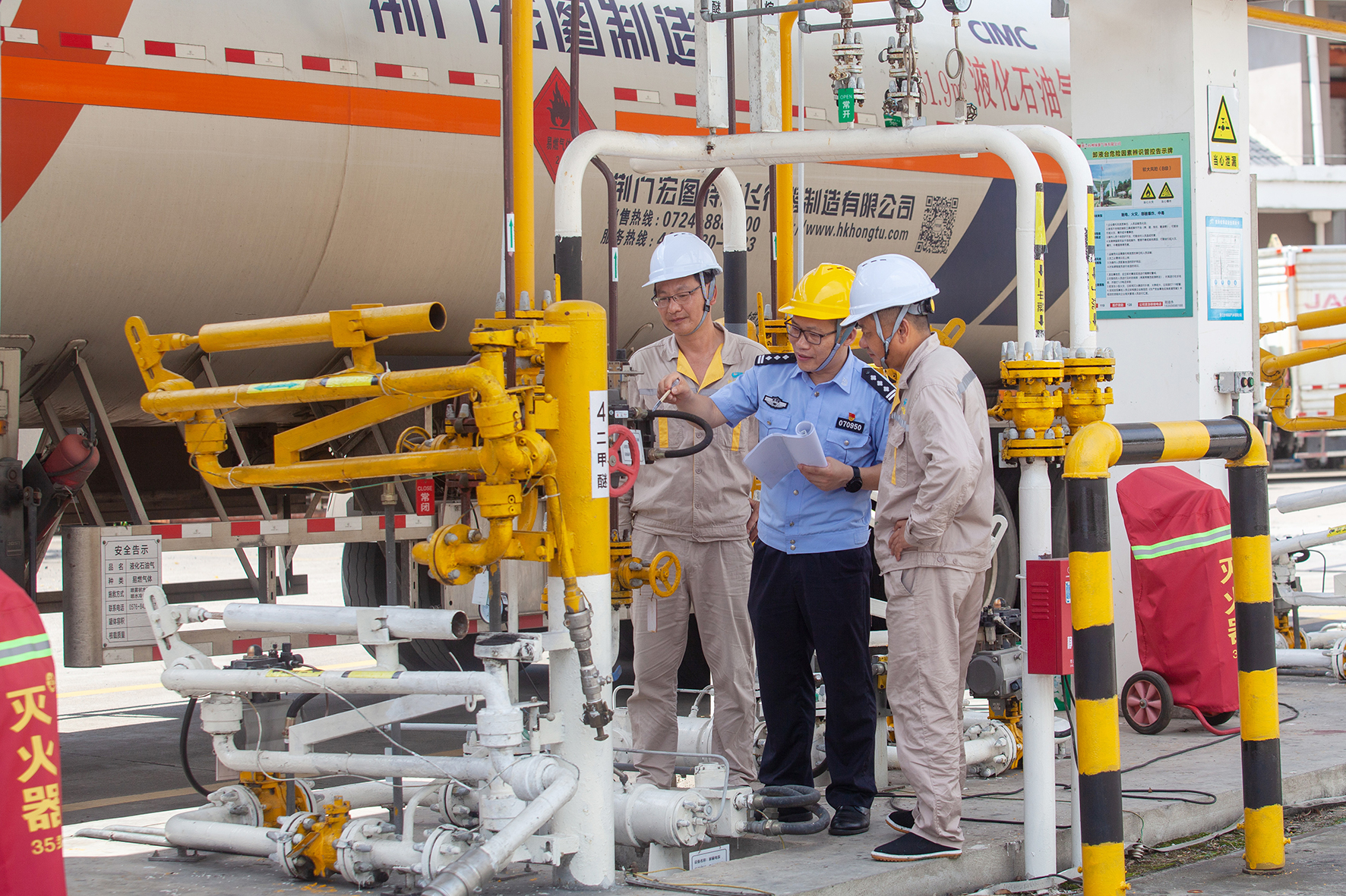 7月1日,浙江省臺(tái)州市公安局黃巖分局城南派出所民警來到轄區(qū)內(nèi)的一家氣體存儲(chǔ)灌裝企業(yè)開展安全檢查。眼下正值高溫季節(jié),黃巖警方組織對各類化學(xué)危險(xiǎn)品生產(chǎn)存儲(chǔ)企業(yè)開展全面安全大排查,對發(fā)現(xiàn)的各類隱患及時(shí)跟進(jìn)整改,防范遏制各種安全事故發(fā)生。