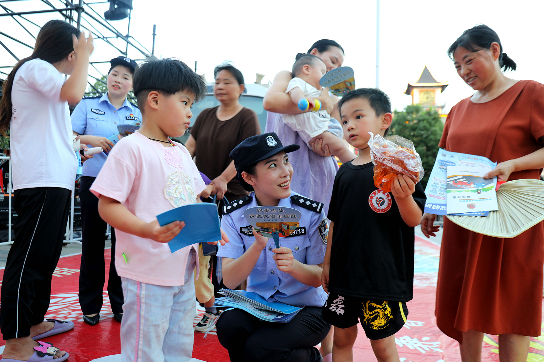 7月6日傍晚,安徽省舒城縣公安局組織刑偵、交警、派出所民警來到縣城區(qū)人員較為聚集的廣場,向群眾開展安全防范宣傳。