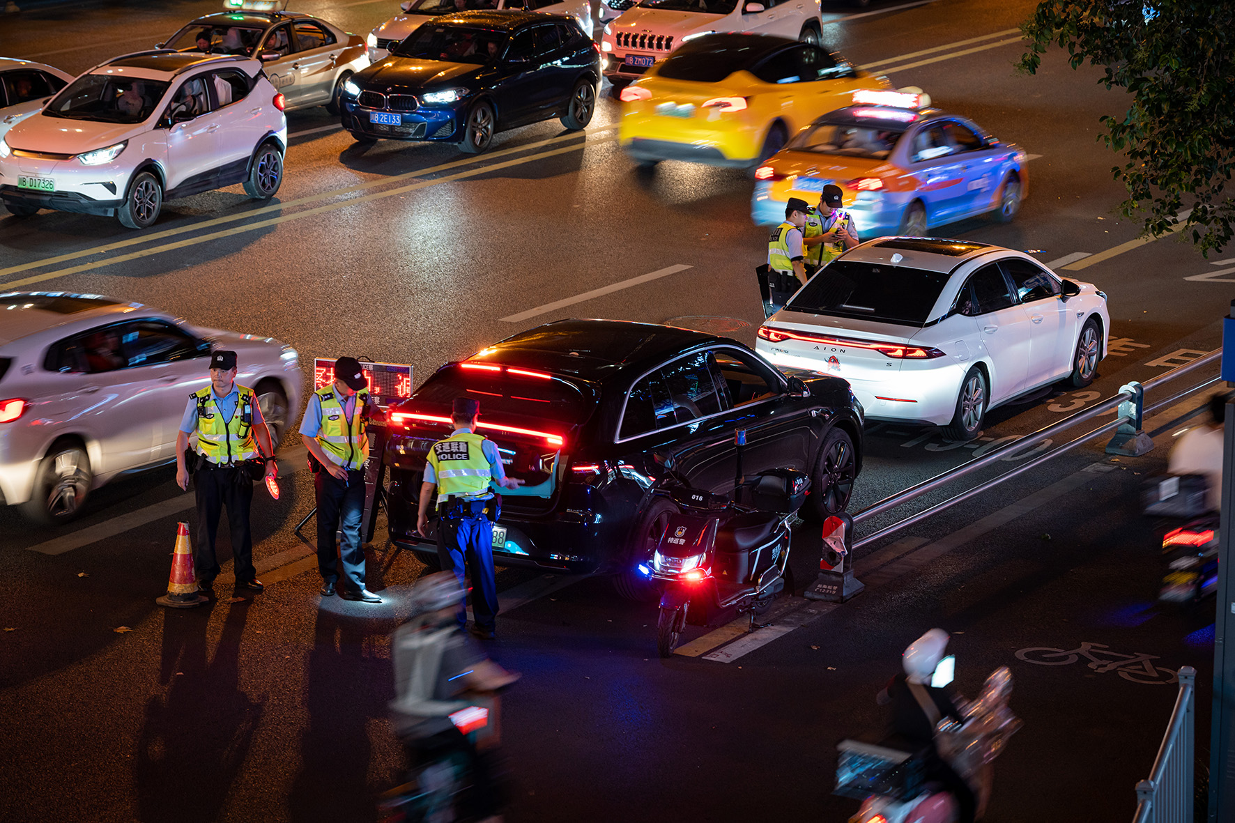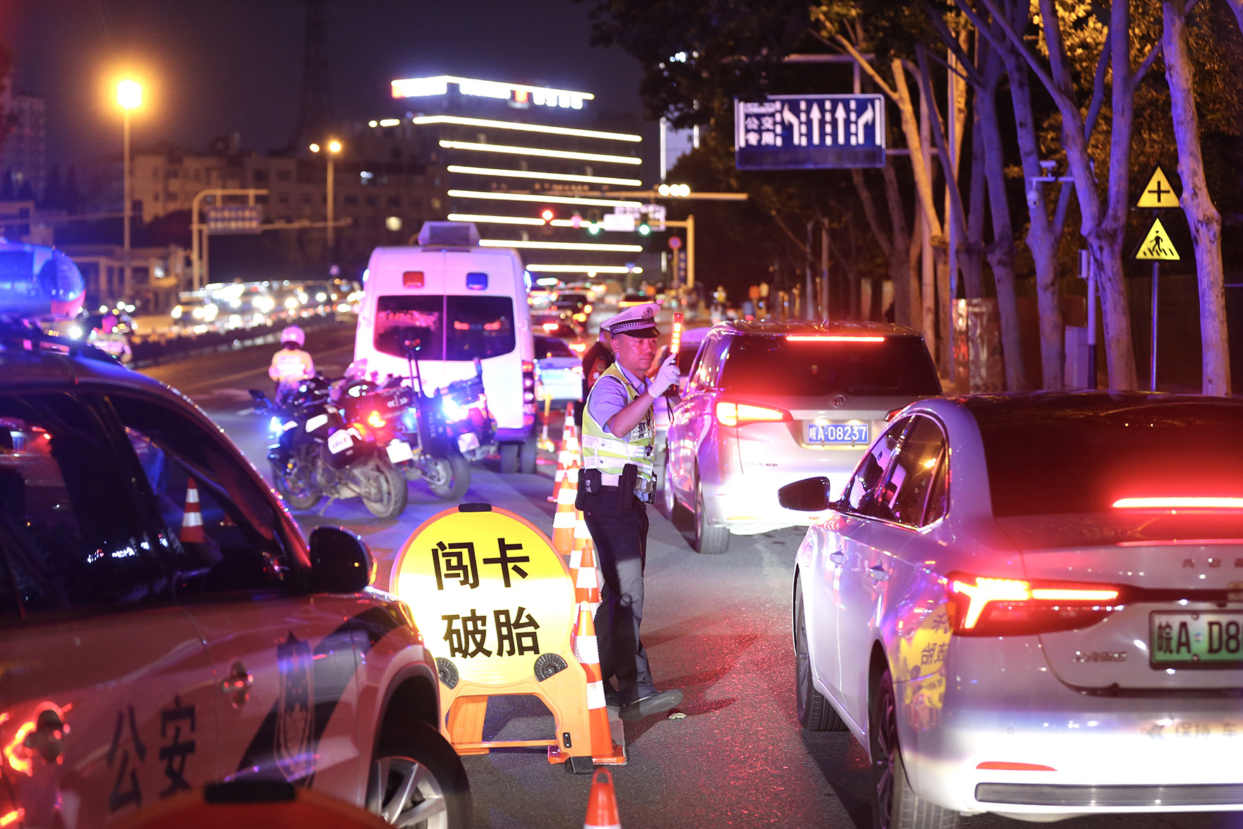 7月6日晚,安徽省合肥市公安局交警支隊(duì)瑤海大隊(duì)民警在街面嚴(yán)查交通違法行為。
