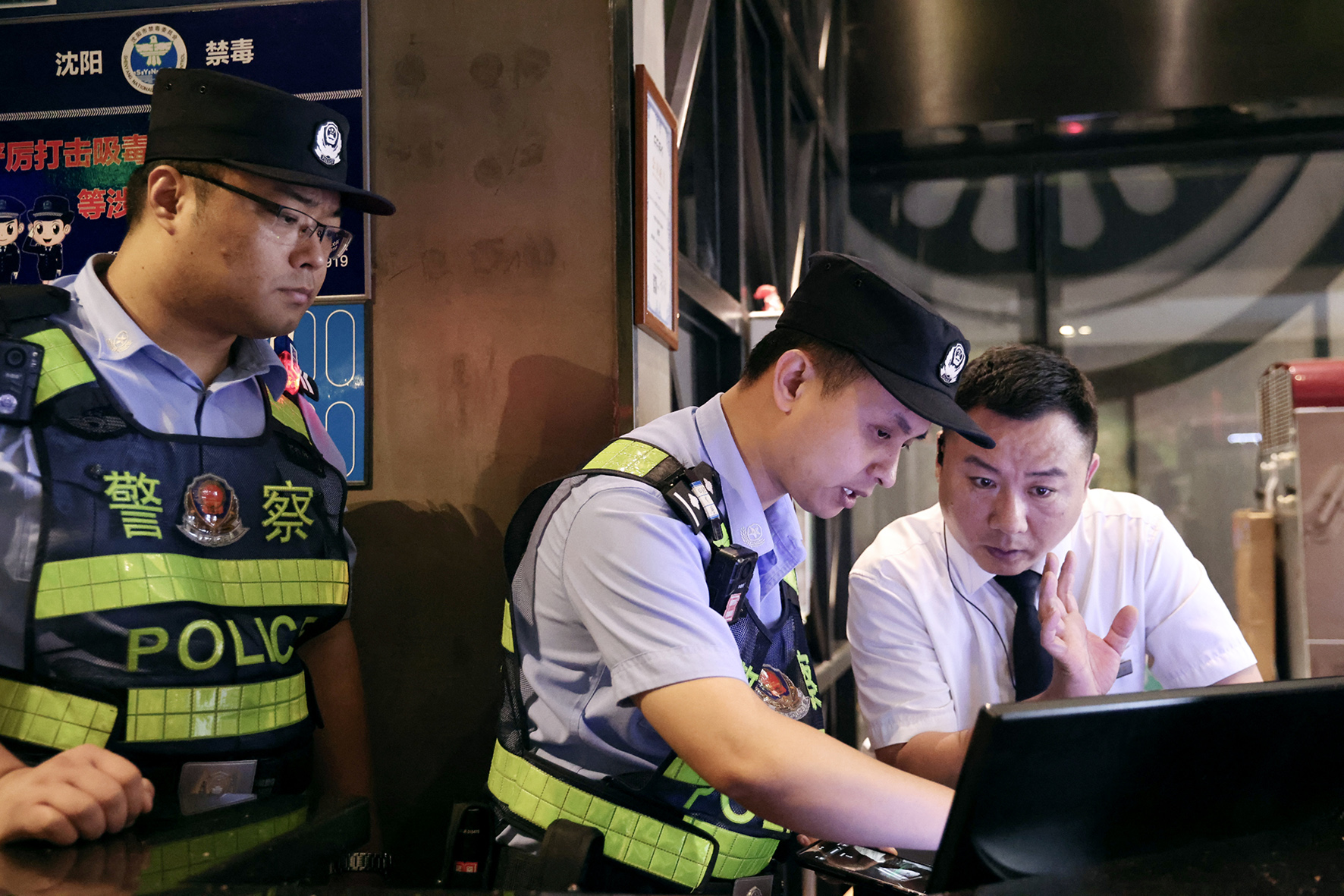 7月6日晚,遼寧省沈陽市公安局和平分局太原街派出所民警在酒店和娛樂場所進(jìn)行檢查。