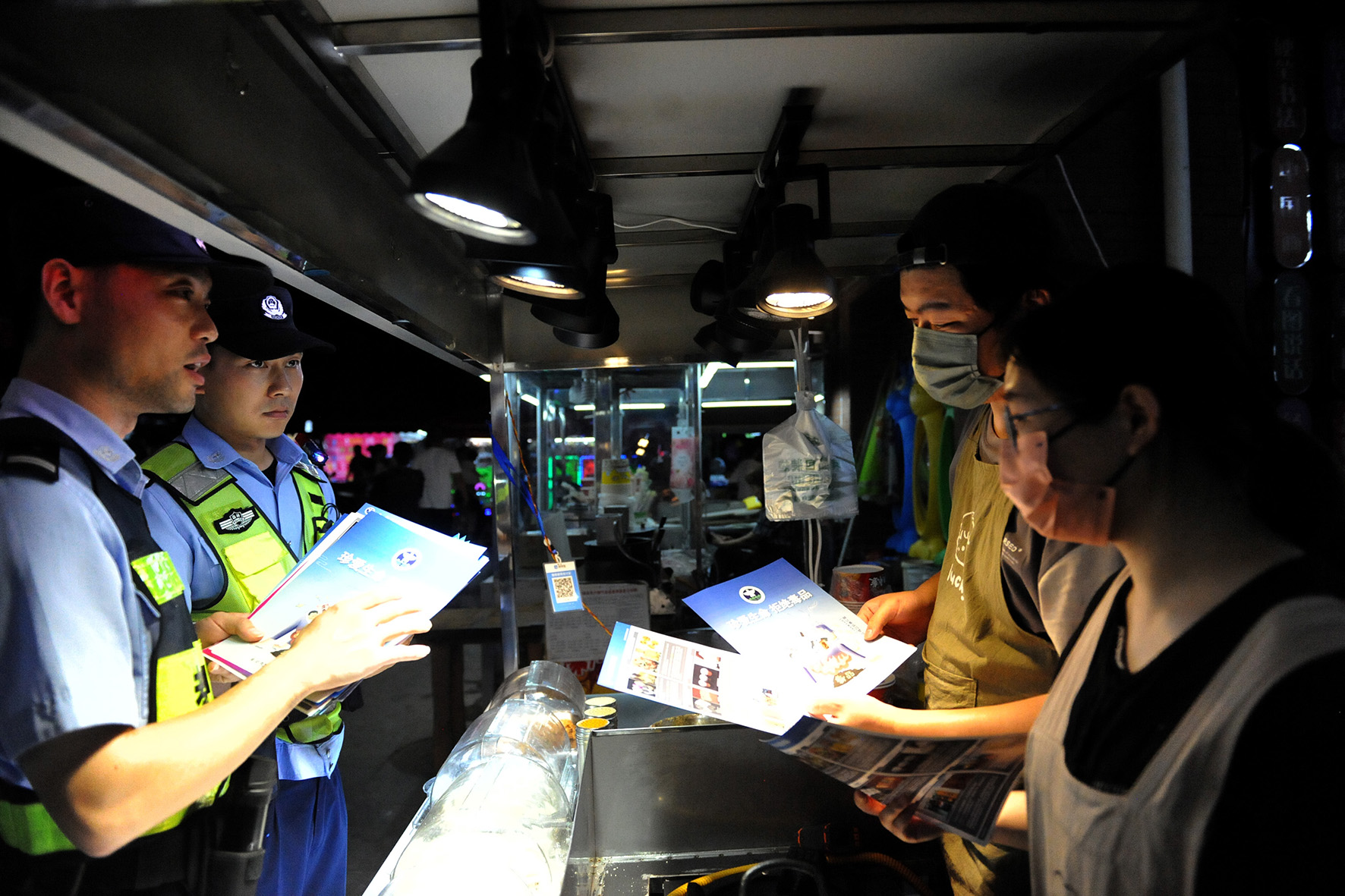 7月6日,山東省棗莊市公安局山亭分局組織開展夏夜治安巡查宣防第一次集中行動(dòng)。民輔警深入廣場、夜市和商業(yè)區(qū)等人員密集場所開展巡邏防控,面對(duì)面向群眾宣講防范盜搶騙、防溺水、拒酒駕、禁毒、禁賭等知識(shí),切實(shí)筑牢平安防線。