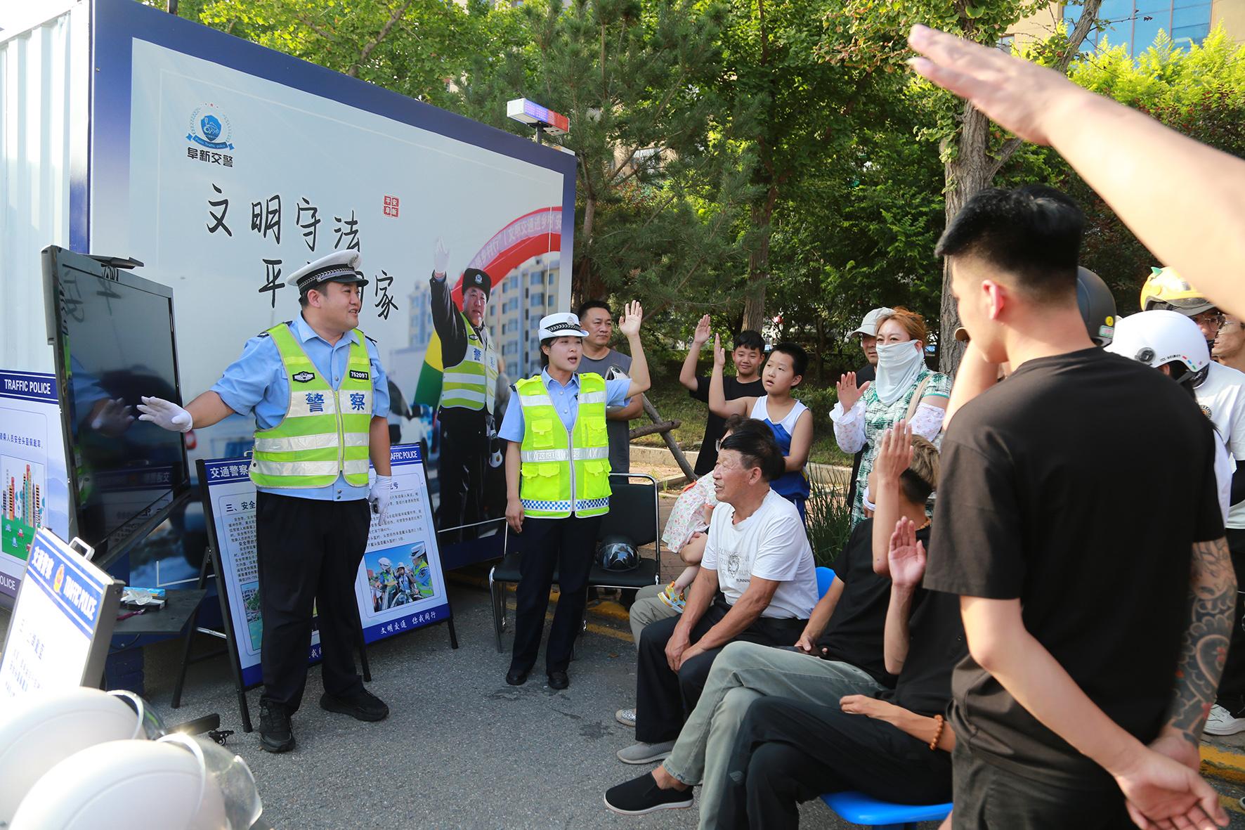 8月1日晚高峰,遼寧省阜新市公安局交警支隊開發(fā)區(qū)大隊在迎賓廣場“馬路學(xué)堂”進行安全宣傳和警示教育,現(xiàn)場組織輕微交通違法人員觀看交通事故警示案例、見證佩戴頭盔的保護作用、交通安全知識競答,引導(dǎo)廣大交通參與者時時遵守交通法律法規(guī),刻刻繃緊交通安全弦。