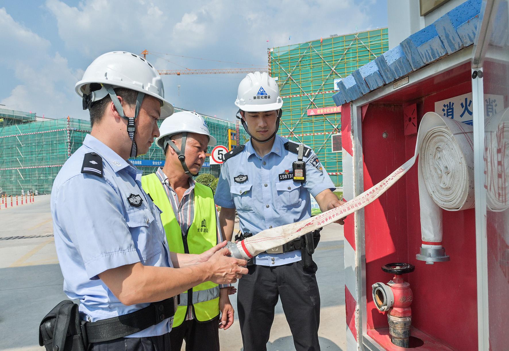 圖為 8月6日,壺山派出所 “項(xiàng)目警長”在重點(diǎn)項(xiàng)目施工現(xiàn)場開展安全檢查,并為高溫下作業(yè)的建設(shè)者送上防暑藥品。