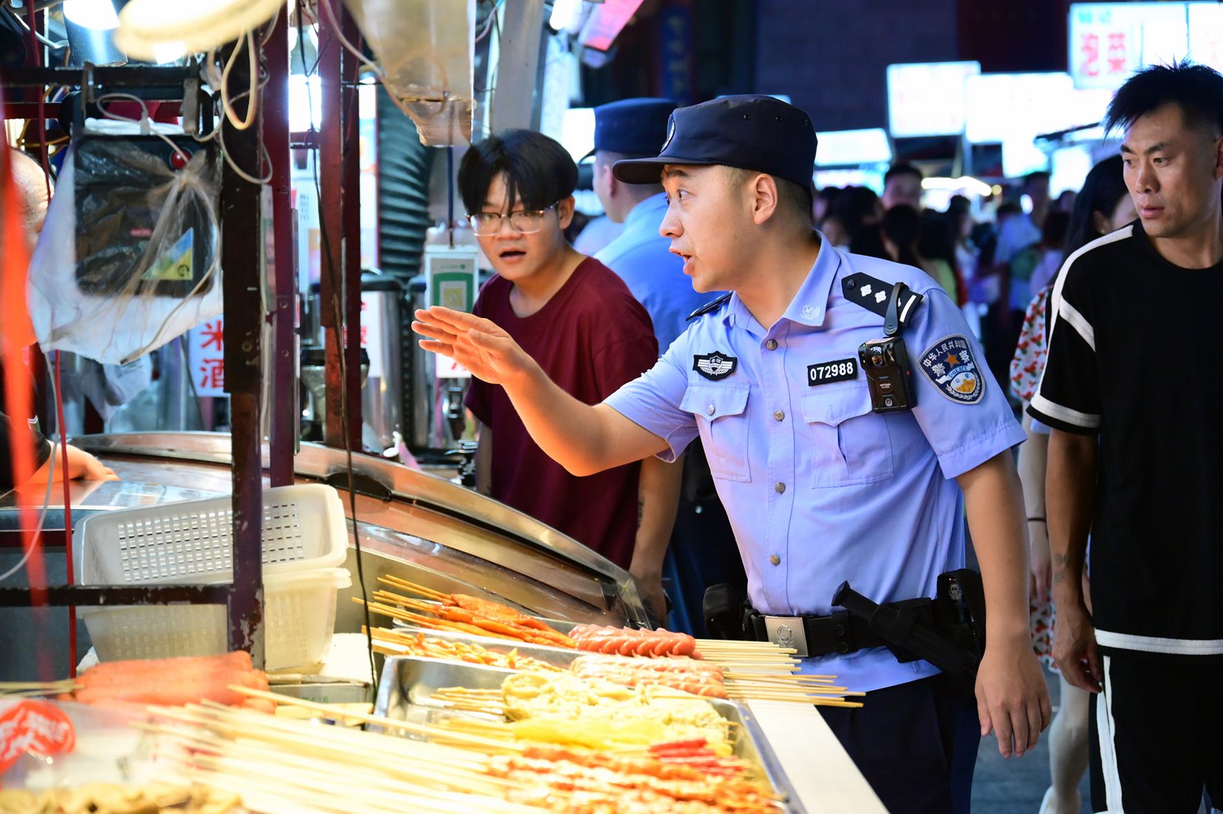 8月10日,河南省鄭州市公安局金水分局巡特警隊(duì)員在全市公安機(jī)關(guān)夏夜治安巡查宣防統(tǒng)一行動(dòng)中,全力以赴恪盡職守,“當(dāng)好守夜人”。