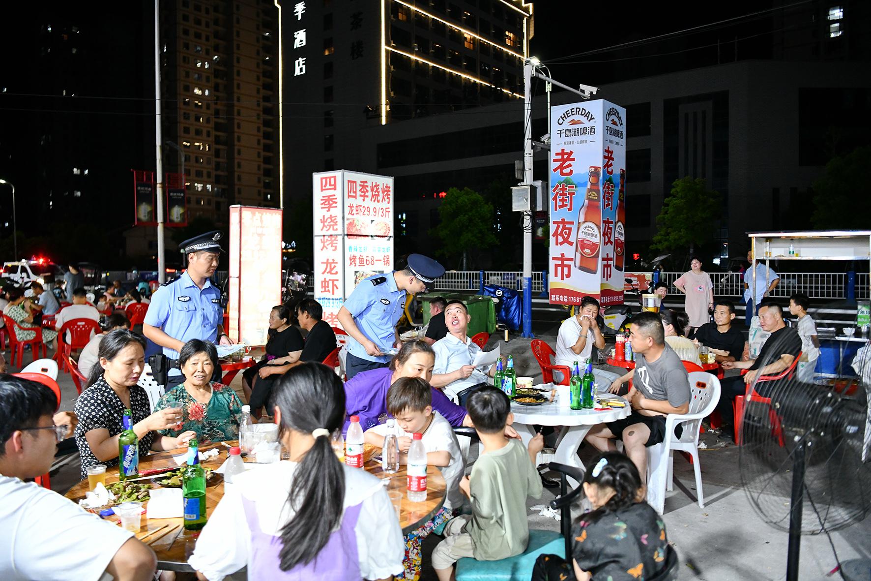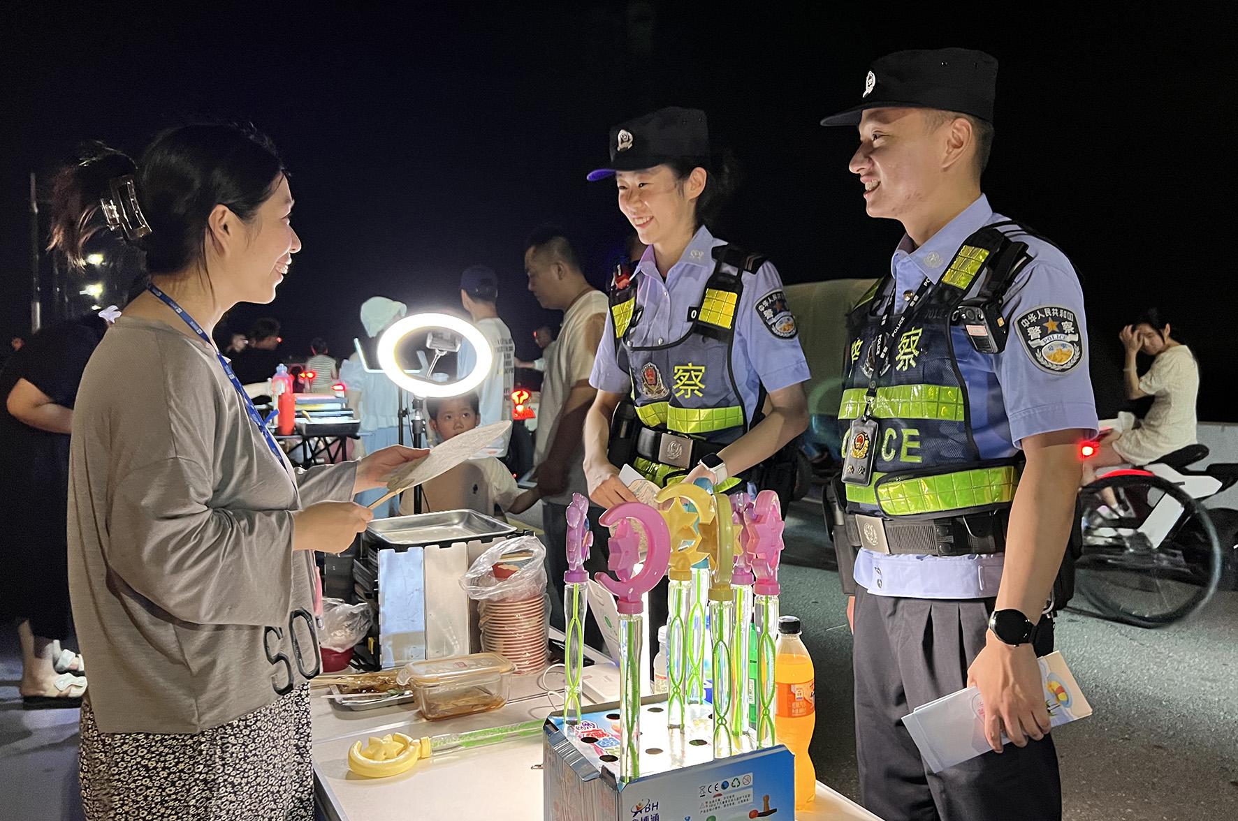 8月10日晚,河南省浚縣公安局結(jié)合夏夜治安巡查宣防集中統(tǒng)一行動(dòng),加大對轄區(qū)商圈、夜市、廣場等人員密集場所的檢查巡邏守護(hù)力度,向群眾宣傳反詐、禁毒、拒賭、防火防盜等安全防范知識(shí)。