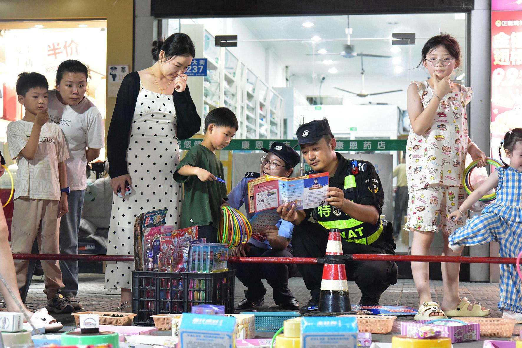 8月11日晚,安徽省和縣公安局經(jīng)偵、禁毒、刑偵等警種聯(lián)合在商業(yè)集中區(qū)域“擺夜攤”,與市民“零”距離互動(dòng),通過有獎(jiǎng)競答,贈(zèng)送法治用品等形式,提升群眾自我保護(hù)意識(shí)和法治意識(shí)。