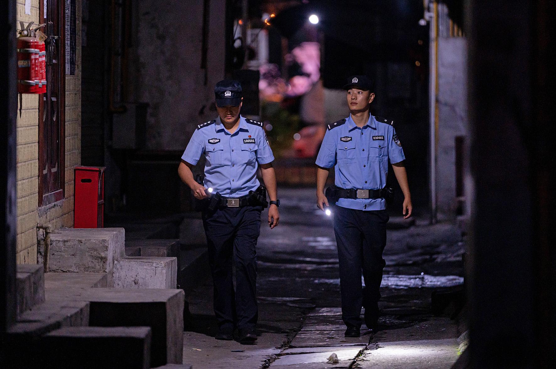 圖為涪城區(qū)分局工區(qū)派出所民警在涪城區(qū)沿江一巷巡邏守護(hù)。