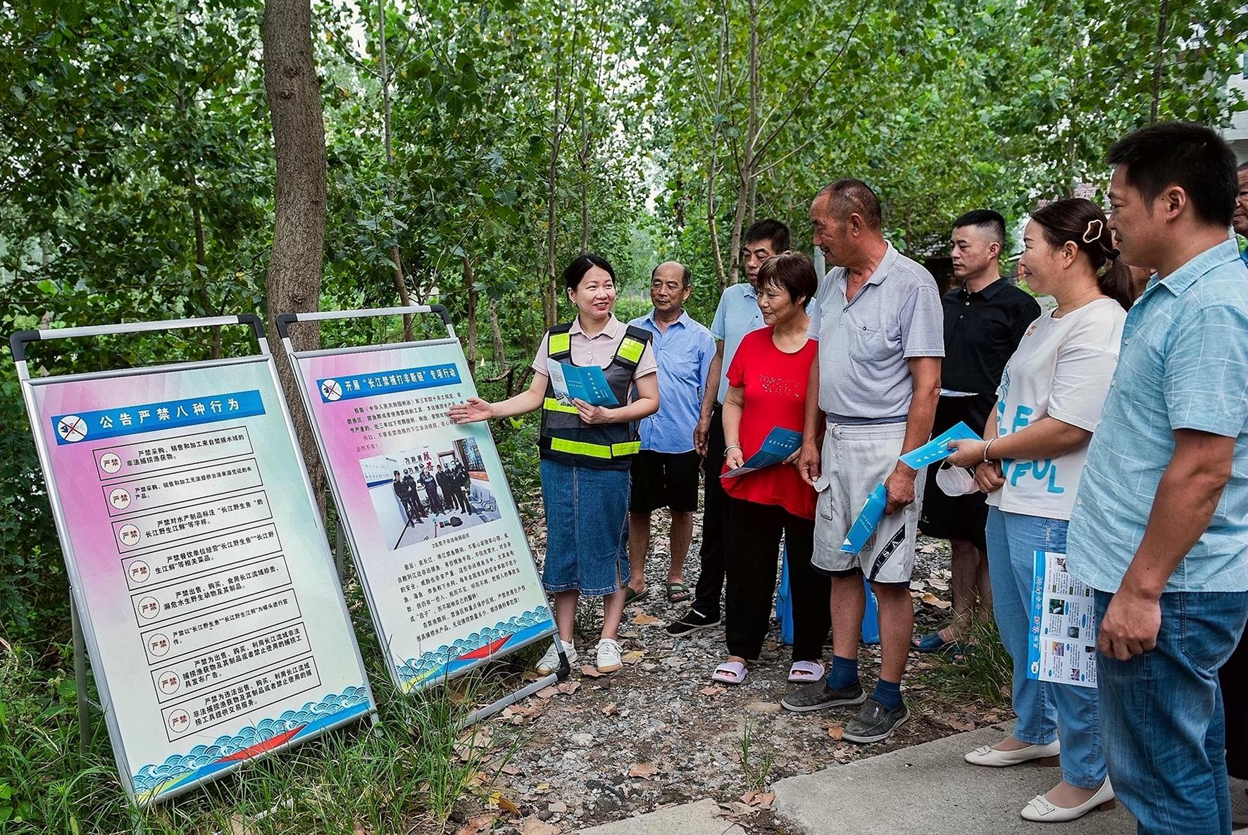 8月14日,安徽省含山縣仙蹤鎮(zhèn)禁漁辦工作人員在滁河邊的再安村宣傳禁捕知識。自從長江流域“十年禁捕”啟動以來,含山縣仙蹤鎮(zhèn)禁漁辦通過張貼禁捕宣傳海報、發(fā)放宣傳單、現(xiàn)場解答等形式,向廣大群眾宣傳長江保護法、漁業(yè)法等有關法律知識,進一步提升廣大群眾保護水域漁業(yè)資源意識,有效維護長江流域生態(tài)環(huán)境安全。