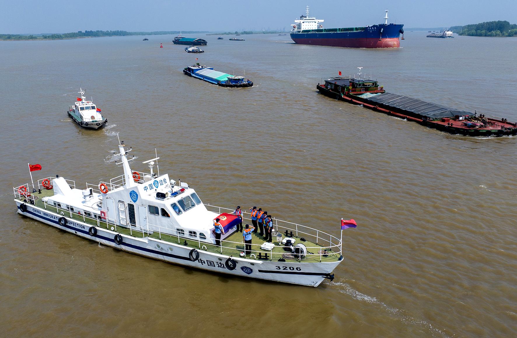 8月22日,長(zhǎng)江航運(yùn)公安局鎮(zhèn)江分局聯(lián)合江蘇出入境邊防檢查總站鎮(zhèn)江邊檢站,在長(zhǎng)江鎮(zhèn)江段水域開(kāi)展聯(lián)合巡航,并舉行重溫入警誓詞活動(dòng),全力守護(hù)“平安長(zhǎng)江”。