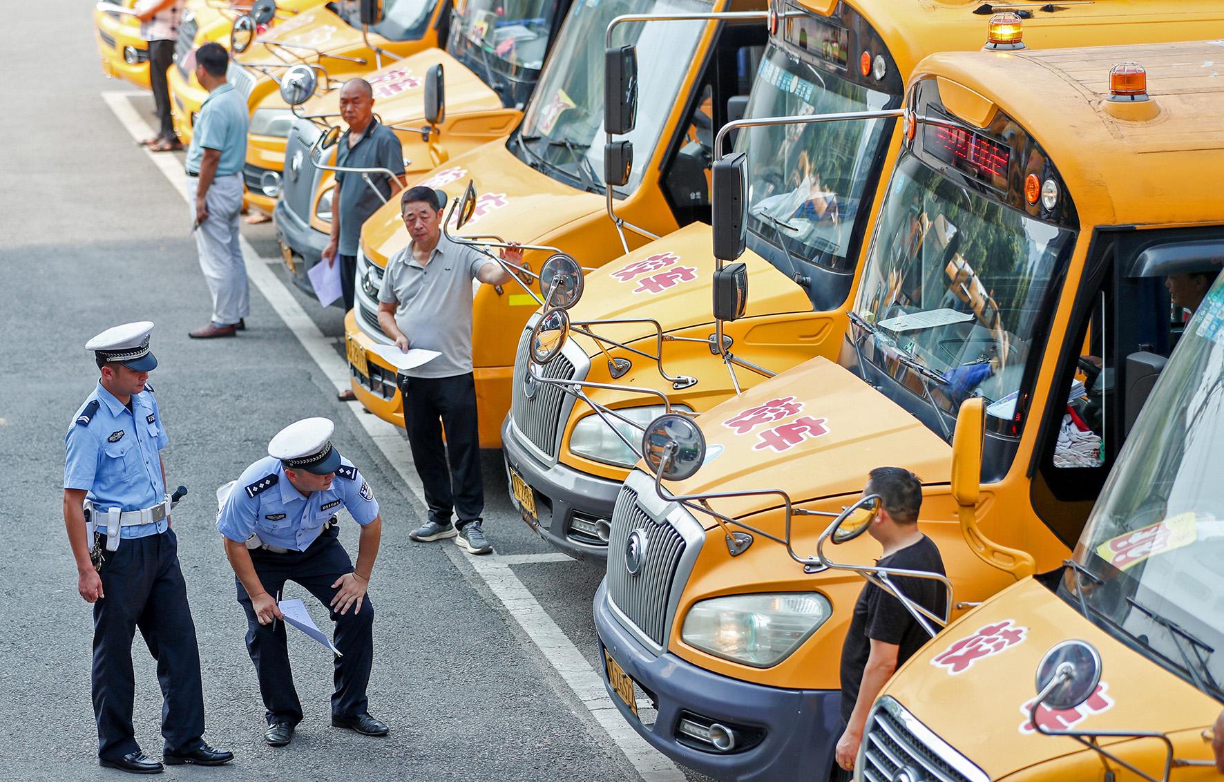 8月28日,四川省華鎣市公安局交通警察大隊(duì)組織民警對轄區(qū)內(nèi)接送學(xué)生的近50輛校車,集中開展安全性能和隨車配備的安全應(yīng)急器材設(shè)備等檢查,及時(shí)排除安全隱患,確保學(xué)生乘車平安。