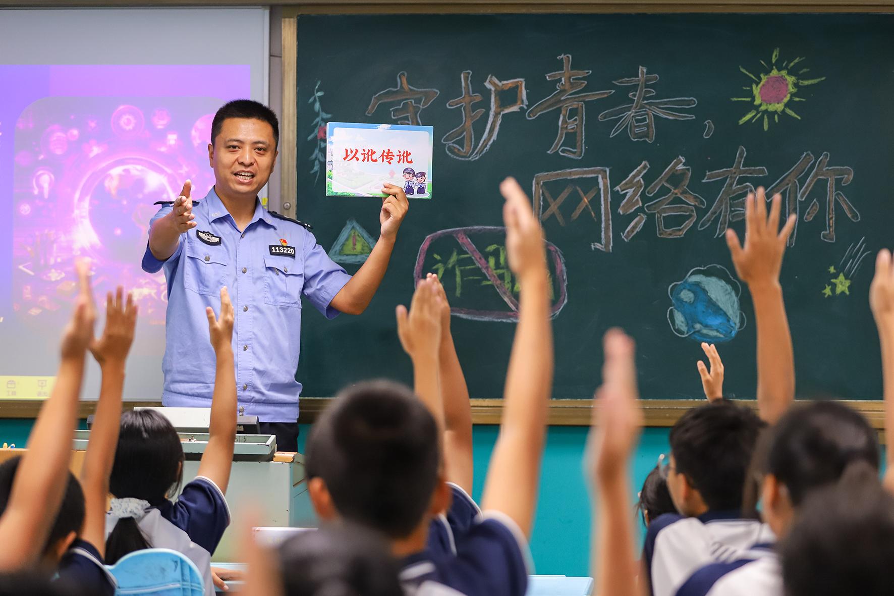 9月9日,浙江省臺(tái)州市公安局黃巖分局新前派出所民警來(lái)到轄區(qū)的小學(xué),給正在電腦教室上課的學(xué)生們講解網(wǎng)絡(luò)安全理念和相關(guān)法律知識(shí)。