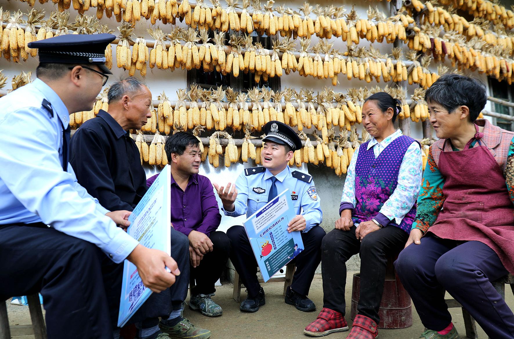 10月15日,安徽省舒城縣公安局廬鎮(zhèn)派出所民警來到位于大山深處的安菜村,與村民交流了解治安情況,開展安全防范宣傳。