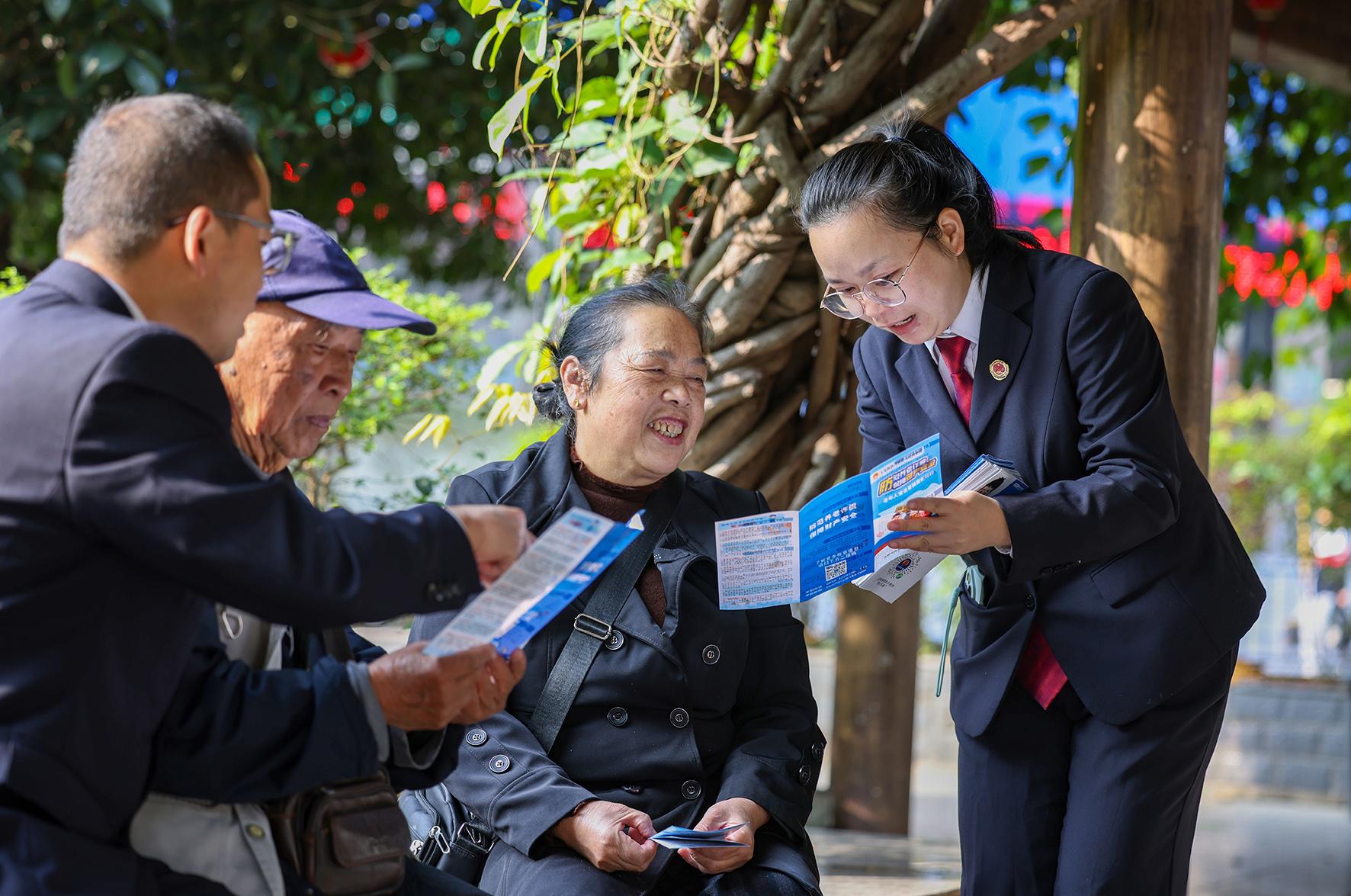 10月29日,貴州省玉屏侗族自治縣人民檢察院檢察官走進(jìn)皂角坪街道紫氣山社區(qū)開(kāi)展防范養(yǎng)老詐騙知識(shí)宣傳。