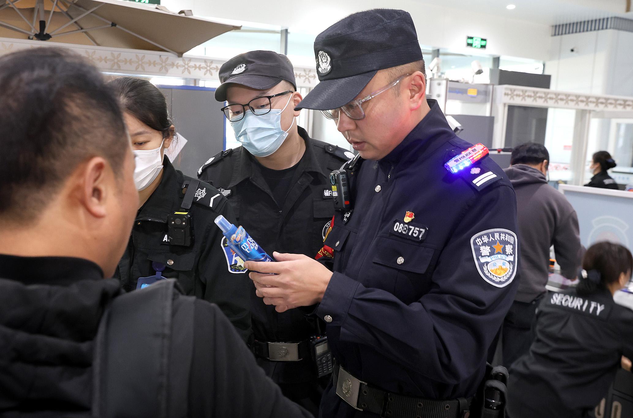 11月5日,南京鐵路公安處南通西站派出所民警在南通西站候車室治安檢查站檢查。為迎接第七屆中國國際進(jìn)口博覽會(huì),南通西站派出所啟動(dòng)南通西站治安檢查站,全面強(qiáng)化站區(qū)重點(diǎn)時(shí)段、重點(diǎn)部位的巡邏防控,切實(shí)筑牢入“滬”屏障。