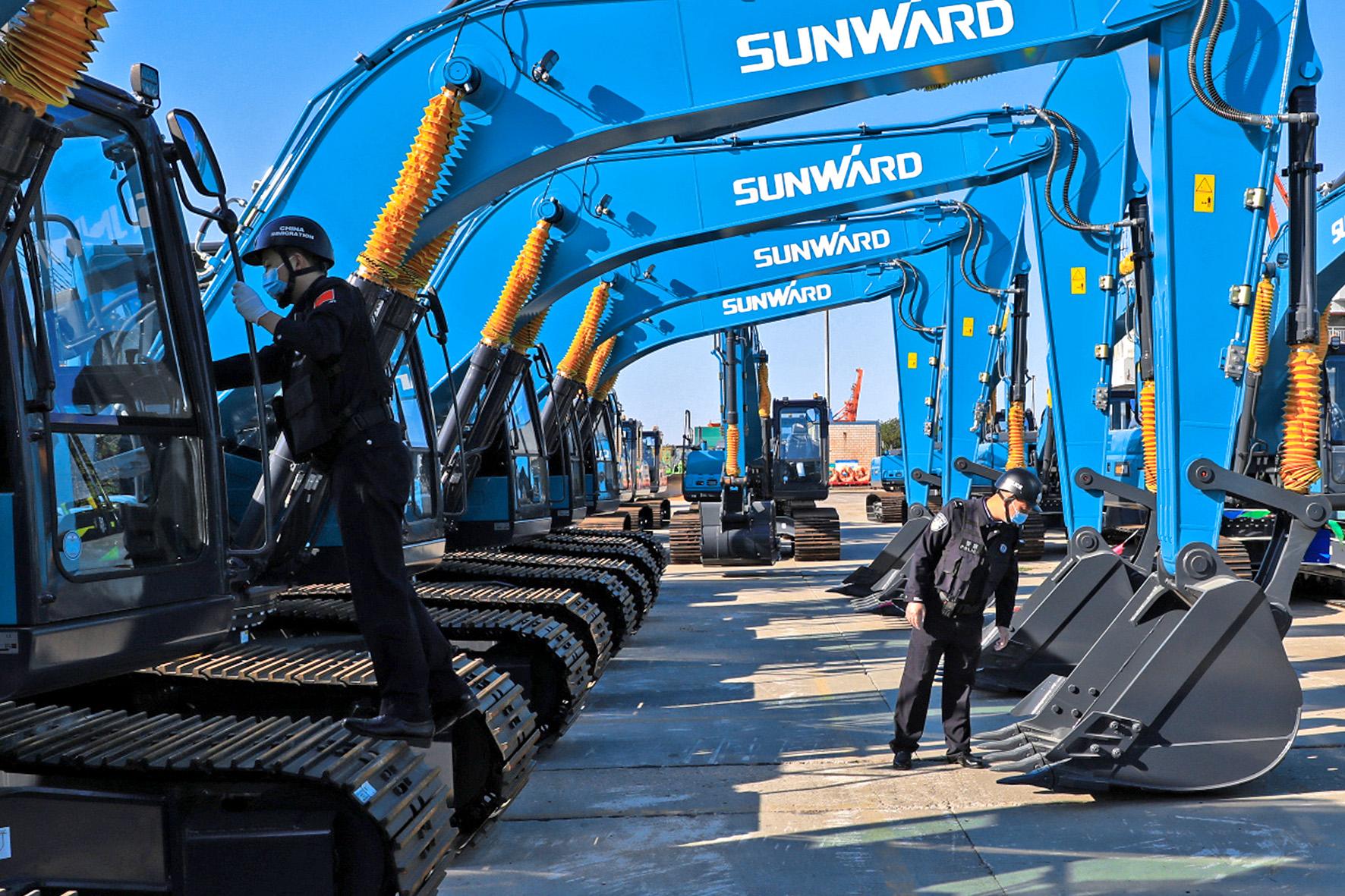 11月11日,鎮(zhèn)江出入境邊防檢查站開通查驗“快捷通道”,為鎮(zhèn)江口岸首次大批量國產(chǎn)工程車輛出口、起航開往印度尼西亞的貨輪保駕護航。