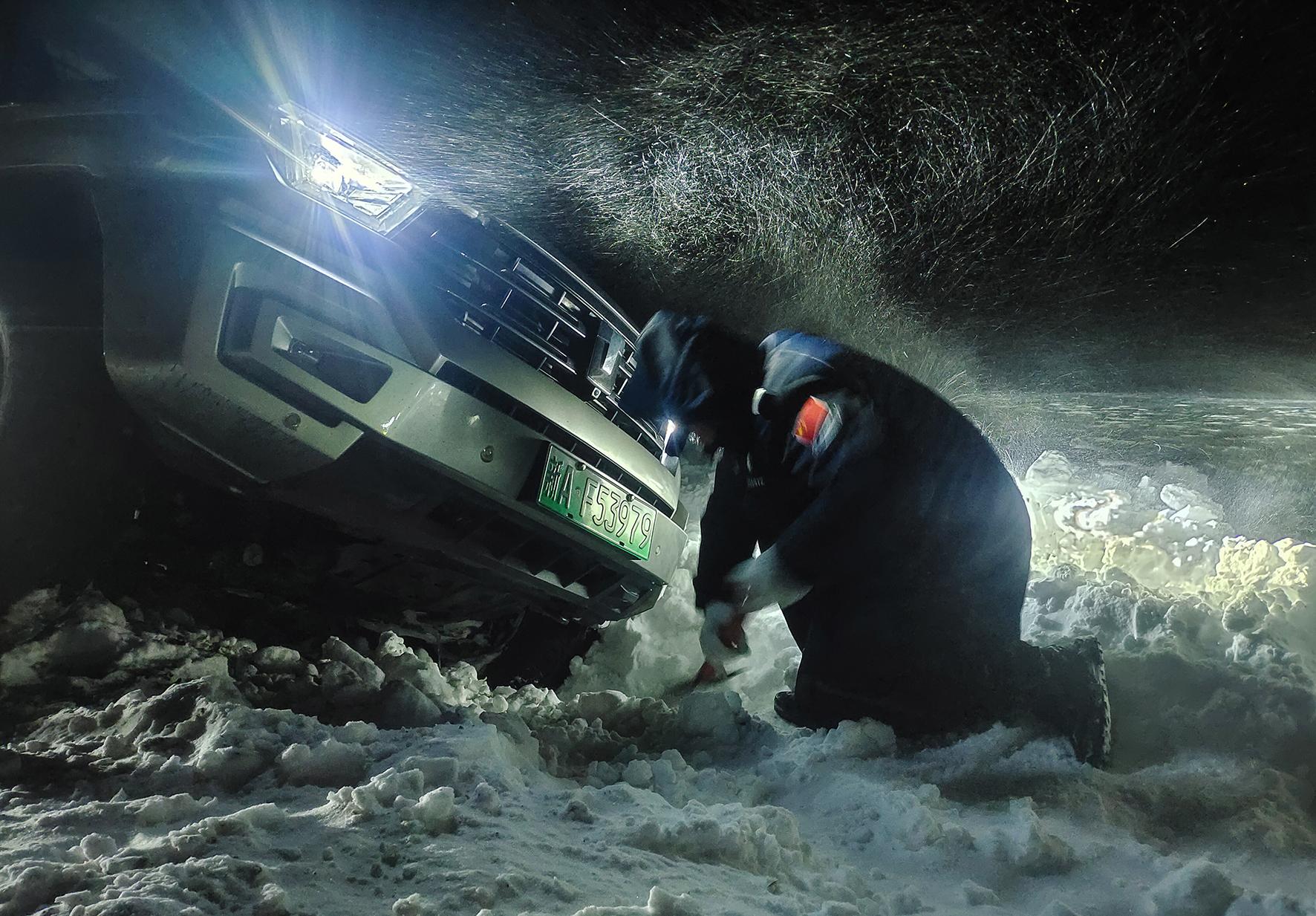 11月11日晚,新疆阿勒泰邊境管理支隊(duì)托斯特邊境派出所接到一司機(jī)報(bào)警求助,稱其駕駛車輛行駛至托斯特鄉(xiāng)森塔斯村夏牧場(chǎng)達(dá)坂處陷入雪中,無法脫困。民警迅速攜帶救援工具前往現(xiàn)場(chǎng),歷經(jīng)半個(gè)小時(shí)成功將人員和車輛救出。