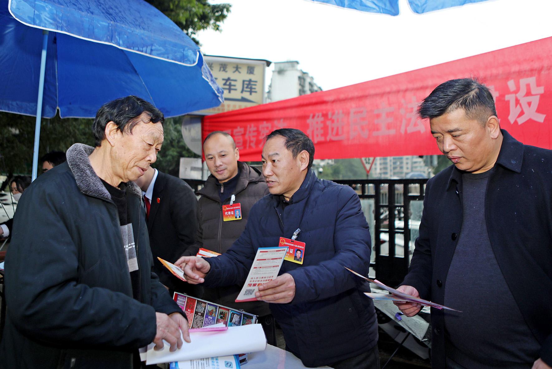 圖為人大代表向市民宣傳法律知識。