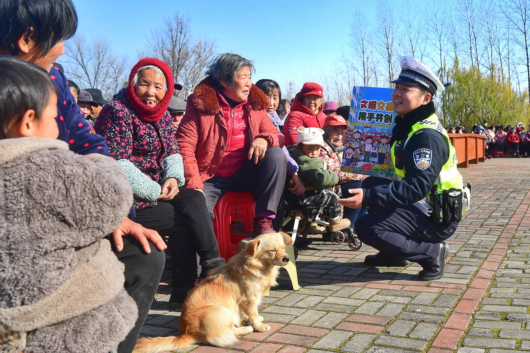 12月16日,安徽省巢湖市公安局交警大隊(duì)民警在蘇灣鎮(zhèn)坊集社區(qū)“四季村晚”群眾文藝匯演現(xiàn)場(chǎng),向群眾開展交通安全宣傳。