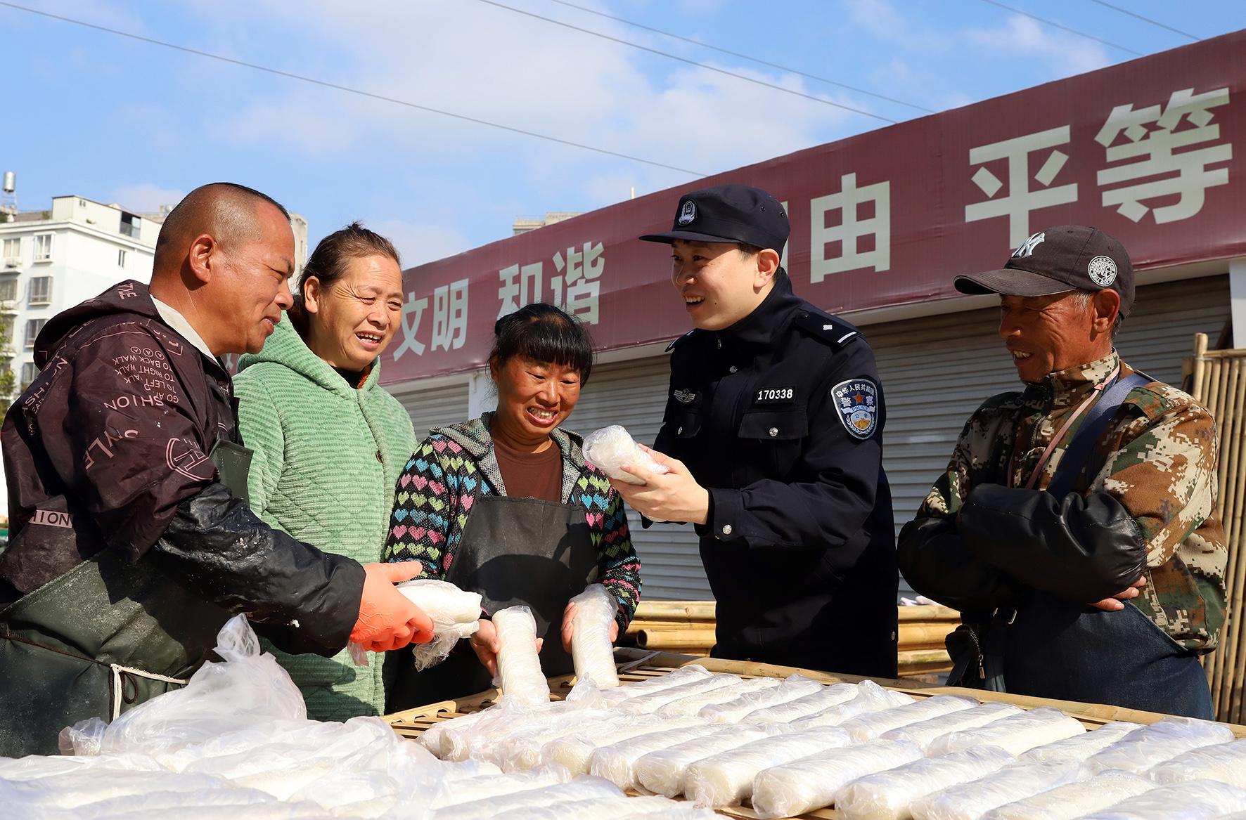 12月24日,浙江省臺(tái)州市路橋區(qū)桐嶼派出所社區(qū)民警在社區(qū)年糕加工點(diǎn)走訪,傾聽群眾的心聲,宣傳消防安全等知識(shí)。