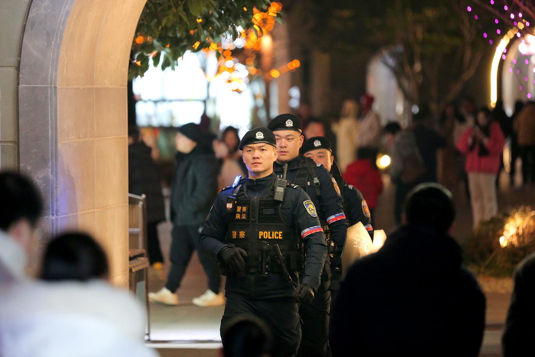 1月29日,江蘇省宜興公安局巡特警大隊(duì)民輔警在雅達(dá)陽羨溪山小鎮(zhèn)景區(qū)巡邏。