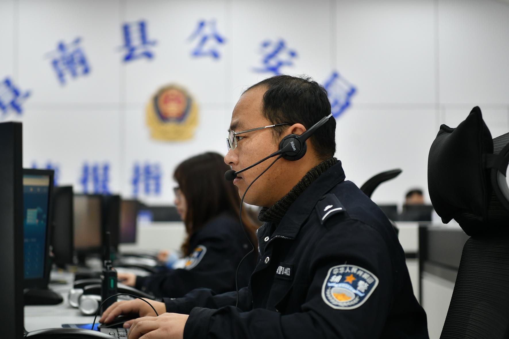 1月29日,安徽省阜南縣公安局指揮中心工作人員在接警。