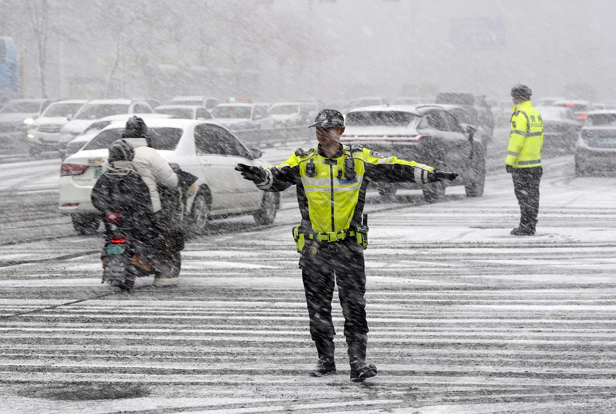 2月3日,山東省煙臺市市區(qū)突降大雪。煙臺市公安局交警支隊(duì)立即啟動(dòng)應(yīng)急預(yù)案,加強(qiáng)對景區(qū)、廟會(huì)、商場等周邊的交通疏導(dǎo),確保節(jié)日期間道路交通通暢。