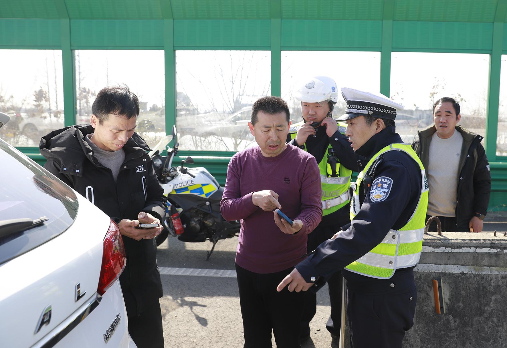 2月4日,安徽省蕪湖市公安局交警支隊(duì)高速三大隊(duì)民警在蕪合高速二壩樞紐附近路段處理一起交通事故。