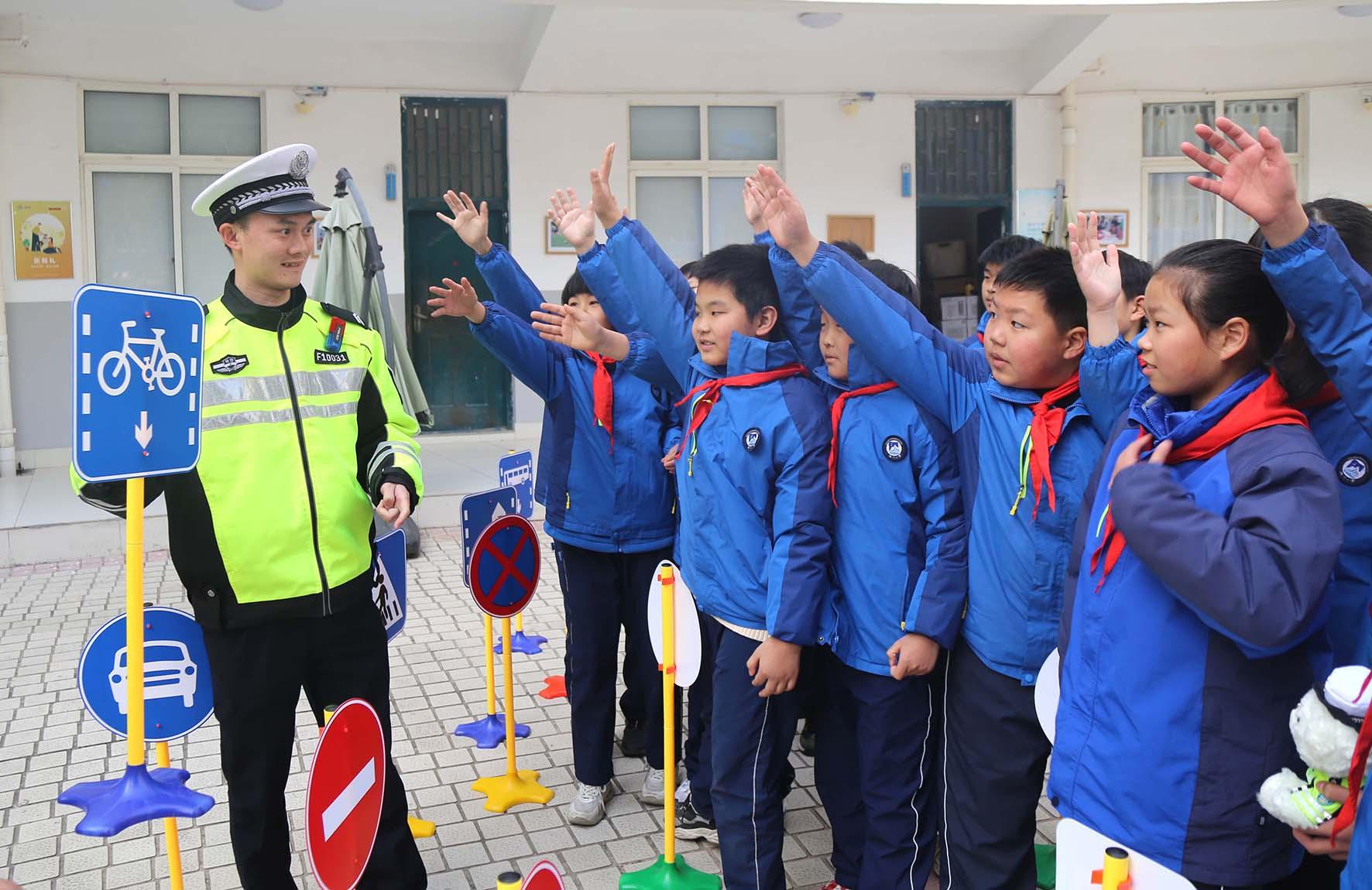 2月14日,安徽省合肥市公安局交警支隊廬陽大隊民警走進育新小學(xué)開展“新春開學(xué)第一課”安全宣教活動。