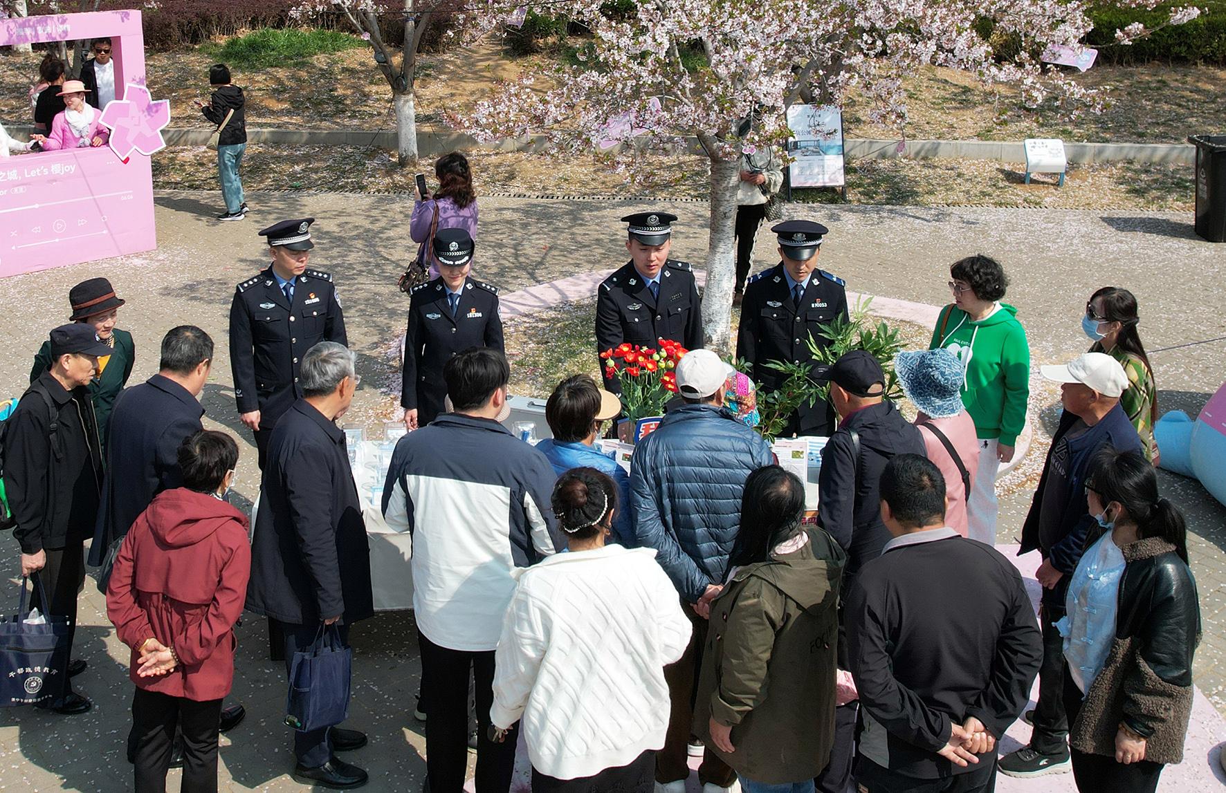 4月9日,山東省煙臺市公安局牟平分局禁毒大隊民警在龍湖櫻花大道通過實(shí)物講解、發(fā)放傳單等形式,向市民和游客宣傳禁毒知識。