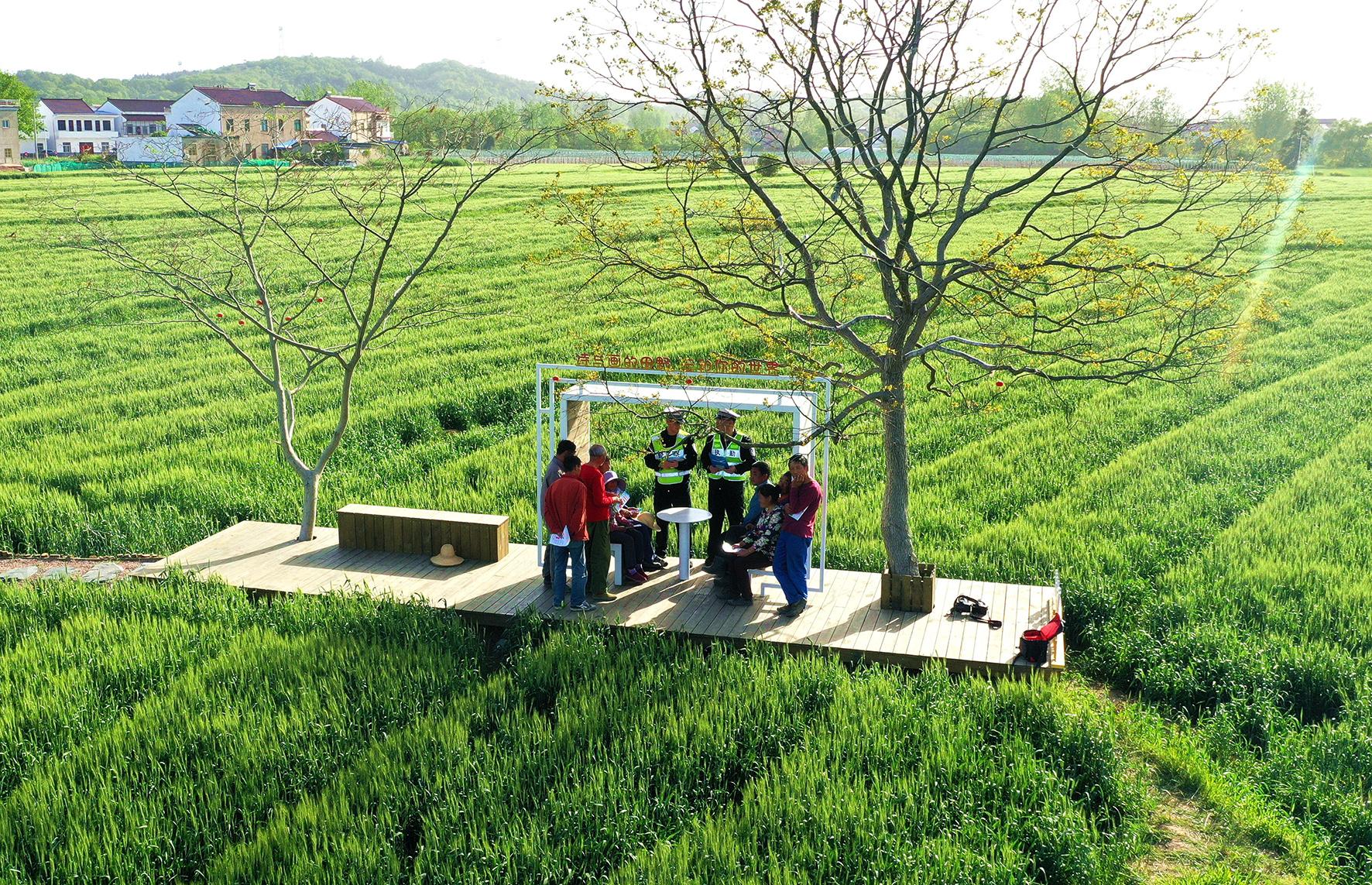 4月13日,安徽省舒城縣公安局交管大隊聯(lián)合闕店派出所走進闕店鄉(xiāng)轉(zhuǎn)水灣村田間地頭開展交通安全宣傳。