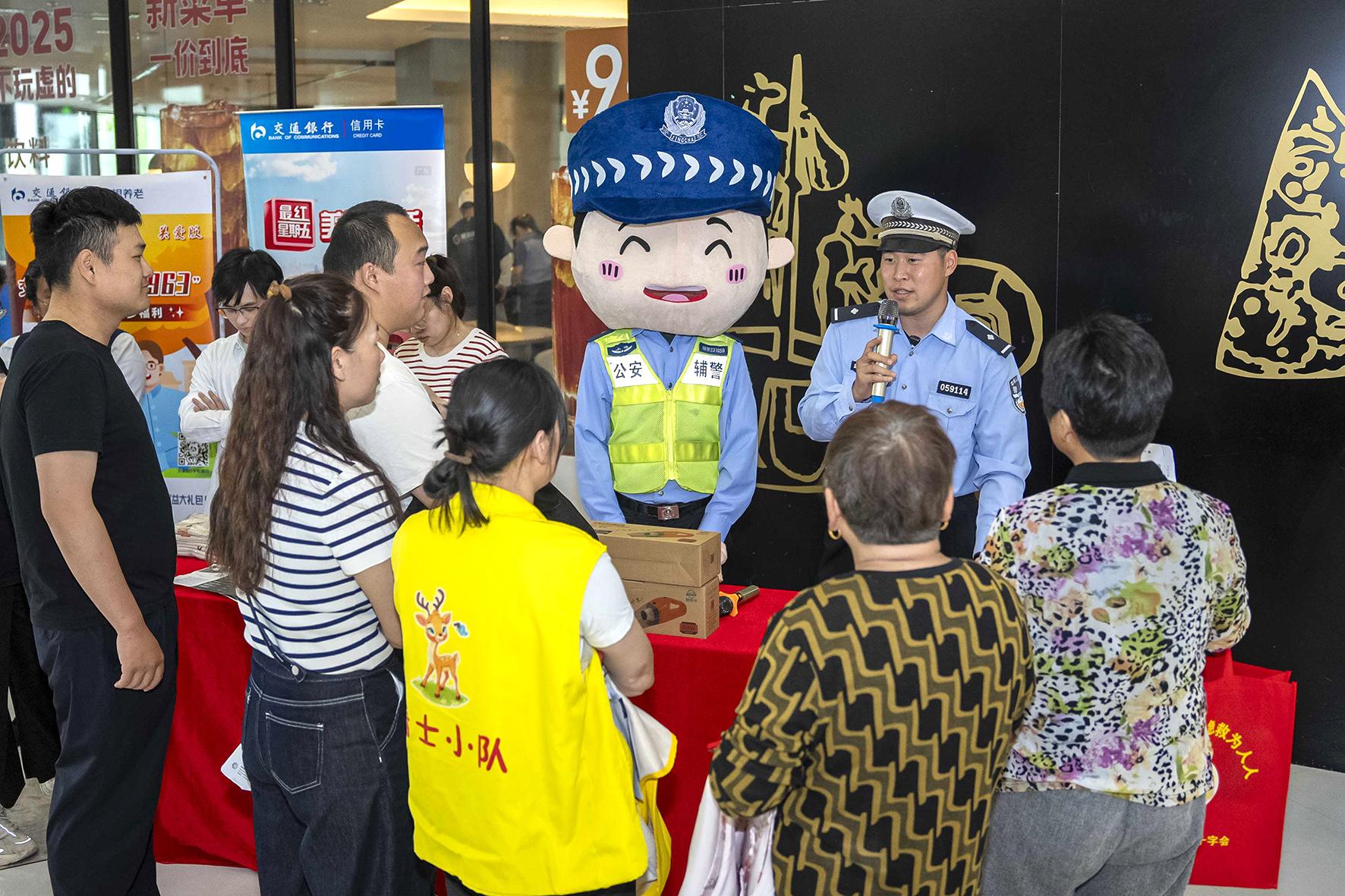 5月15日,上海市公安局崇明分局交管支隊組織民輔警走進轄區(qū)萬達廣場,開展“平安交通伴我行”主題宣傳活動。