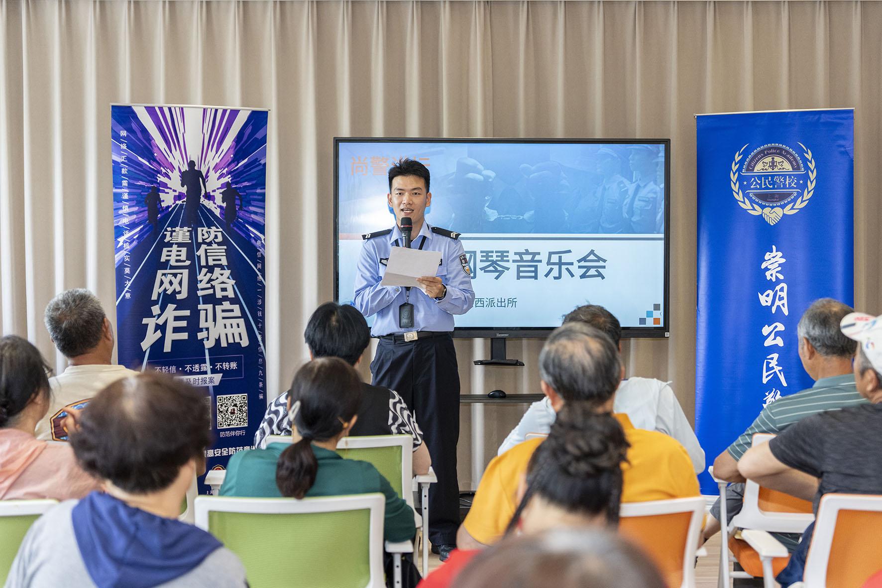 5月26日,上海市公安局崇明分局港西派出所聯(lián)合轄區(qū)老年音樂愛好者,在老年活動中心舉辦了一場別開生面的“反詐音樂會”。