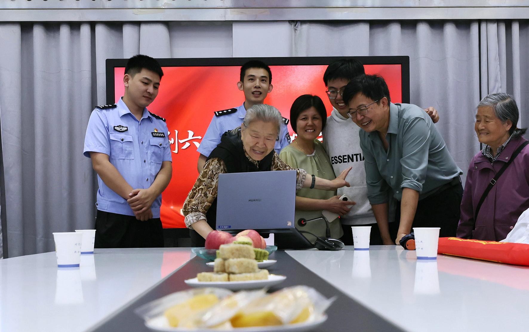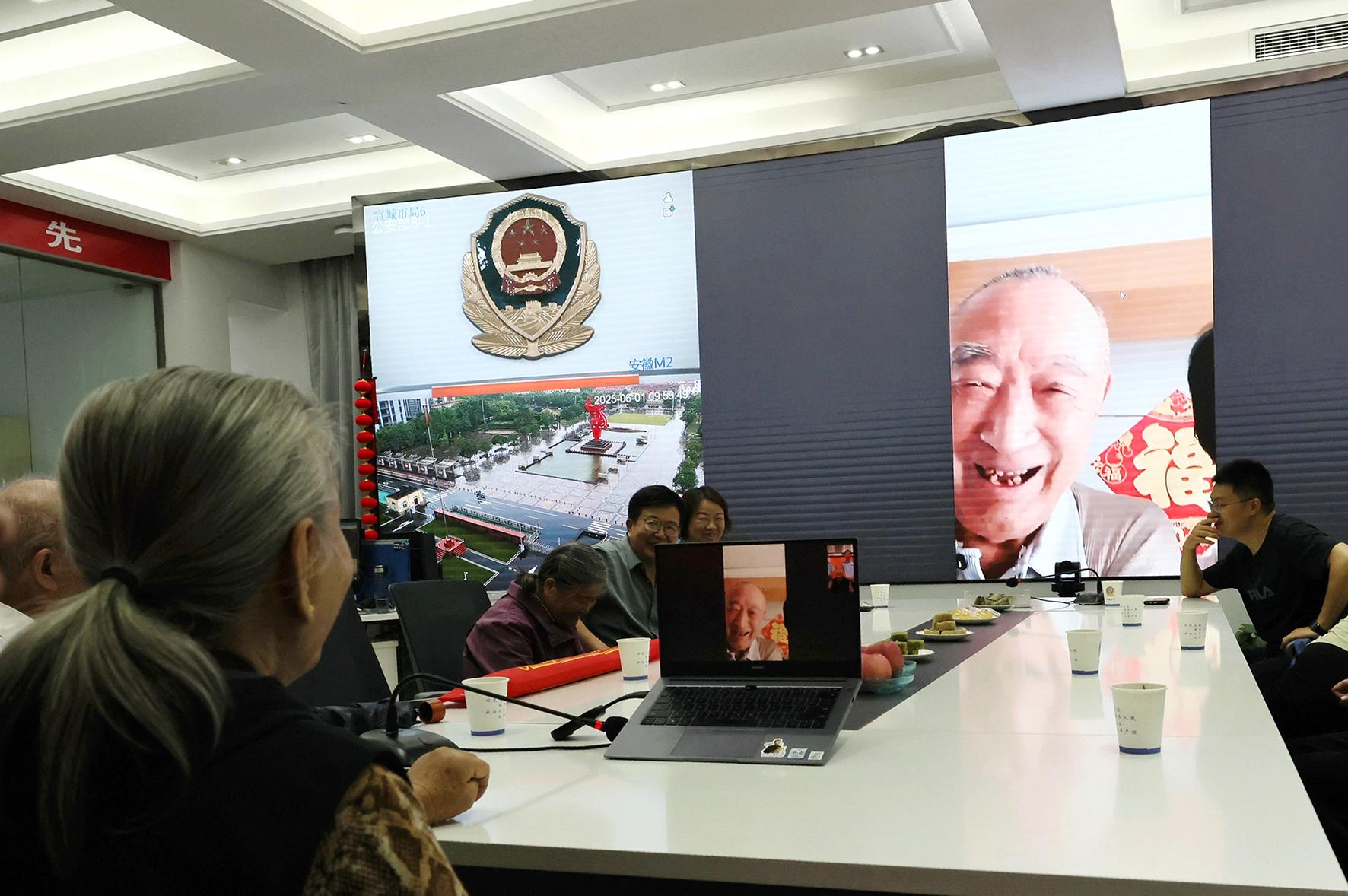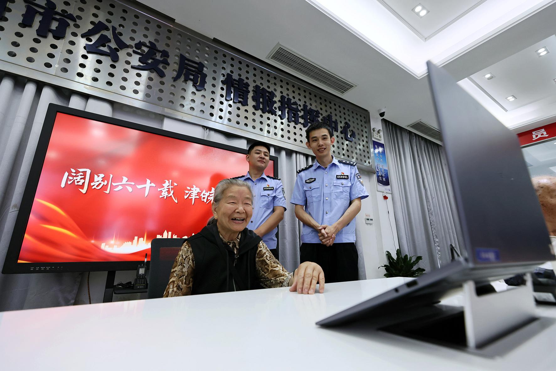 6月1日,79歲的高奶奶攜家人來到安徽省寧國市公安局指揮中心大廳,與遠(yuǎn)在千里的天津親人云團(tuán)圓。
