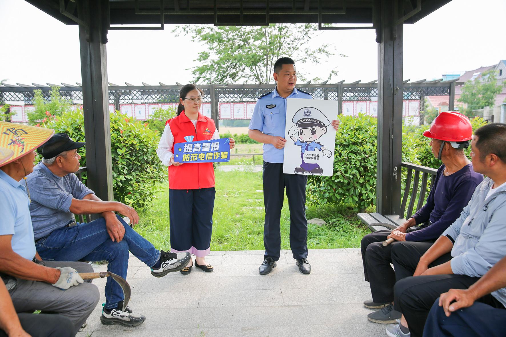 6月3日,江蘇省如皋市公安局高新區(qū)派出所民警走進(jìn)城南街道夏莊社區(qū)普及防范電信網(wǎng)絡(luò)詐騙知識。
